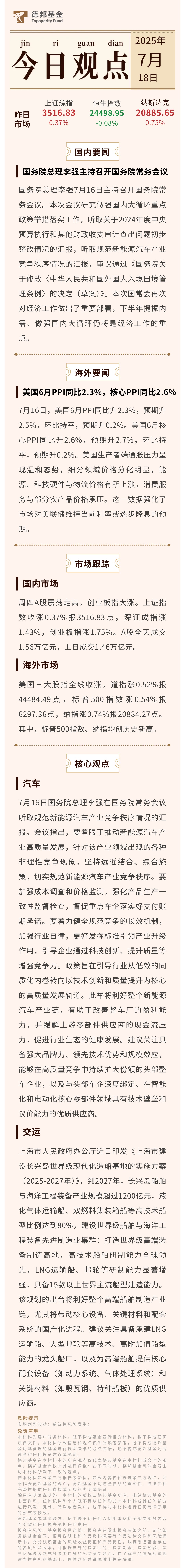 7月18日财经速递,带您最快跟踪板块表现和市场资讯!