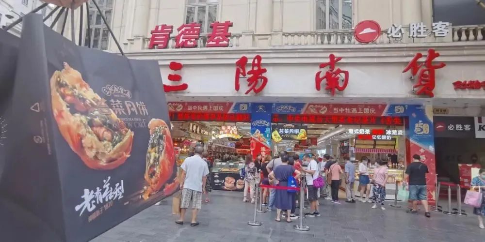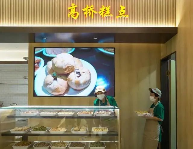 淮海路上的长春食品商店的鲜肉月饼,传承自高桥的工艺,高桥松饼是上海高桥镇的著名特色产品之一,至今已有100余年历史。因其入口酥松而得名。又因酥皮层次分明,每层薄如纸,别称千层饼。成品形如月饼,饼面呈金黄色,油润光洁,四周乳白色,底部不焦结发硬,酥皮层次分明,馅心无杂质,皮薄馅足,酥松香甜。