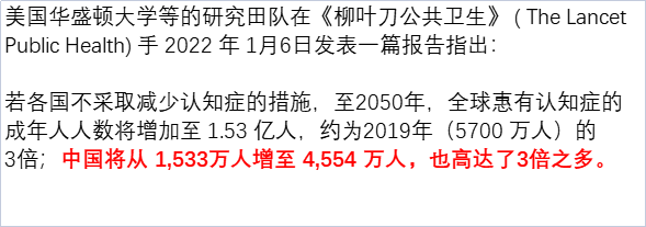 46:15 根据《柳叶刀》发布的认知症截止2022年以及2050年预估数据,如果不控制,推算2050年中国将有1.5亿人直接被认知症影响,间接影响人口更多!
