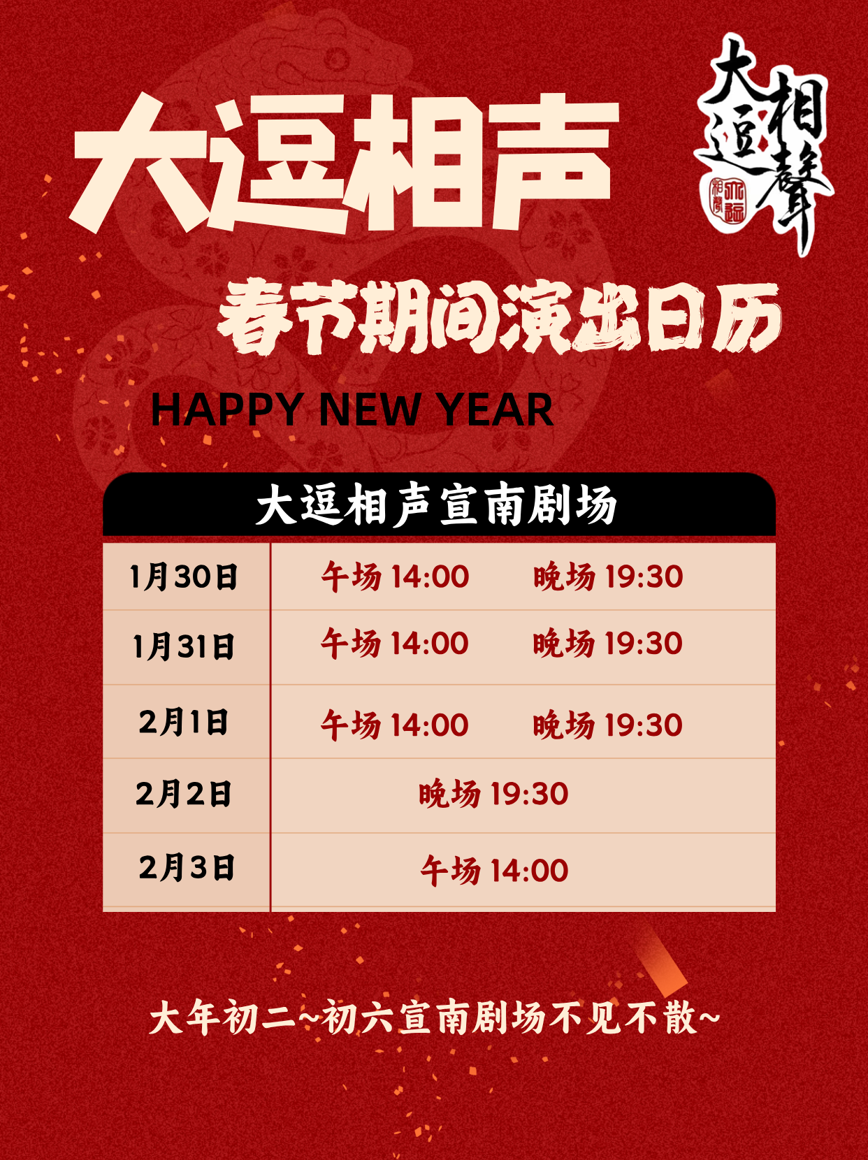 大逗相声春节演出安排: