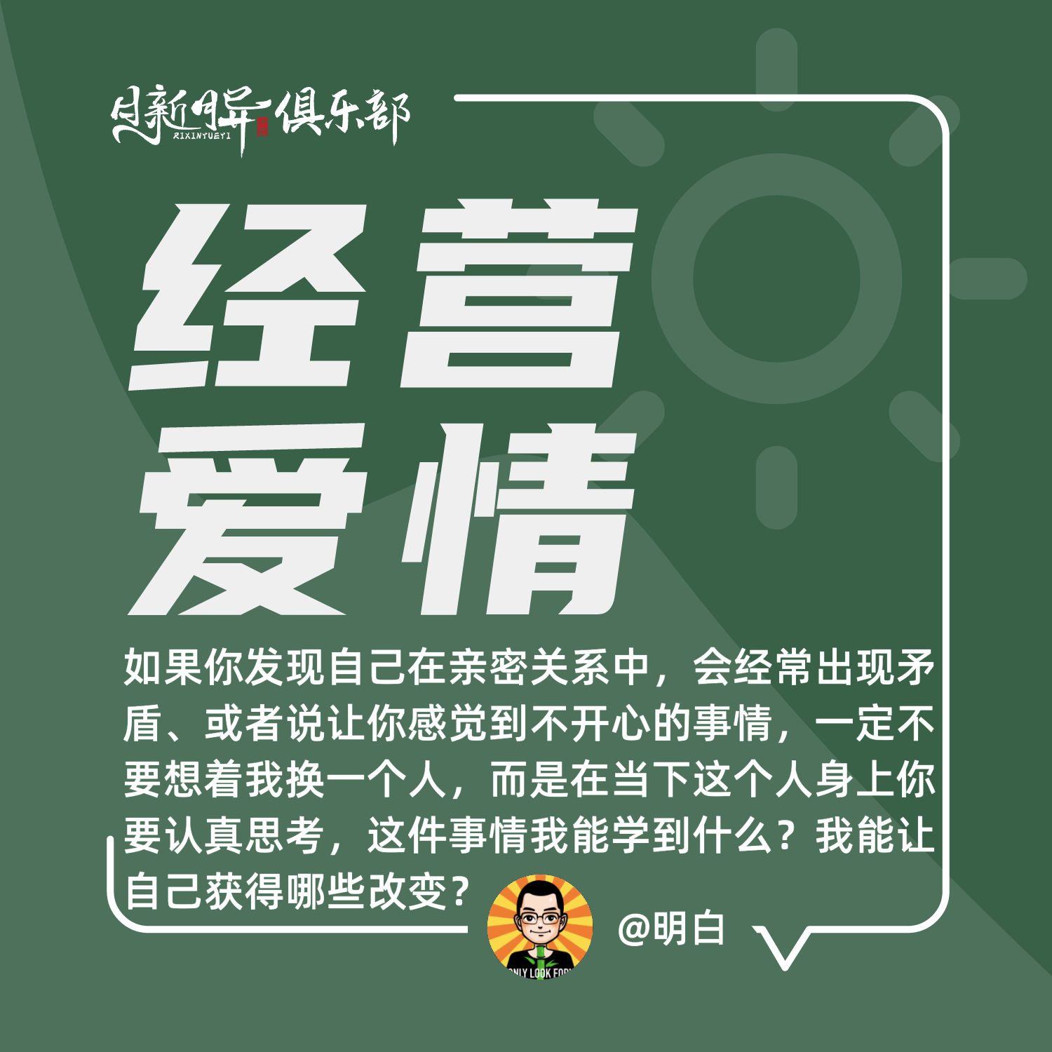 所以如果你发现自己在亲密关系中,在感情中会经常出现一些矛盾、或者说让你感觉到不开心的事情,一定不要想着我换一个人,而是在当下这个人身上你要认真思考,这件事情我能学到什么?我能从这个地方让自己获得哪些改变。