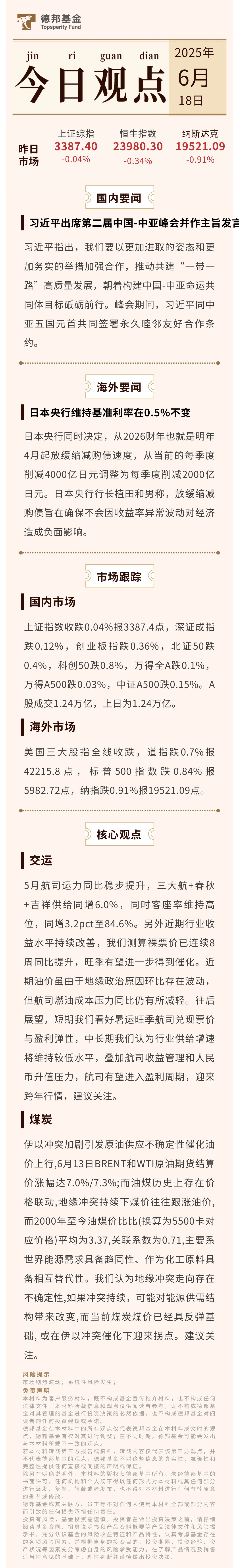 6月18日财经速递,带您最快跟踪板块表现和市场资讯!
