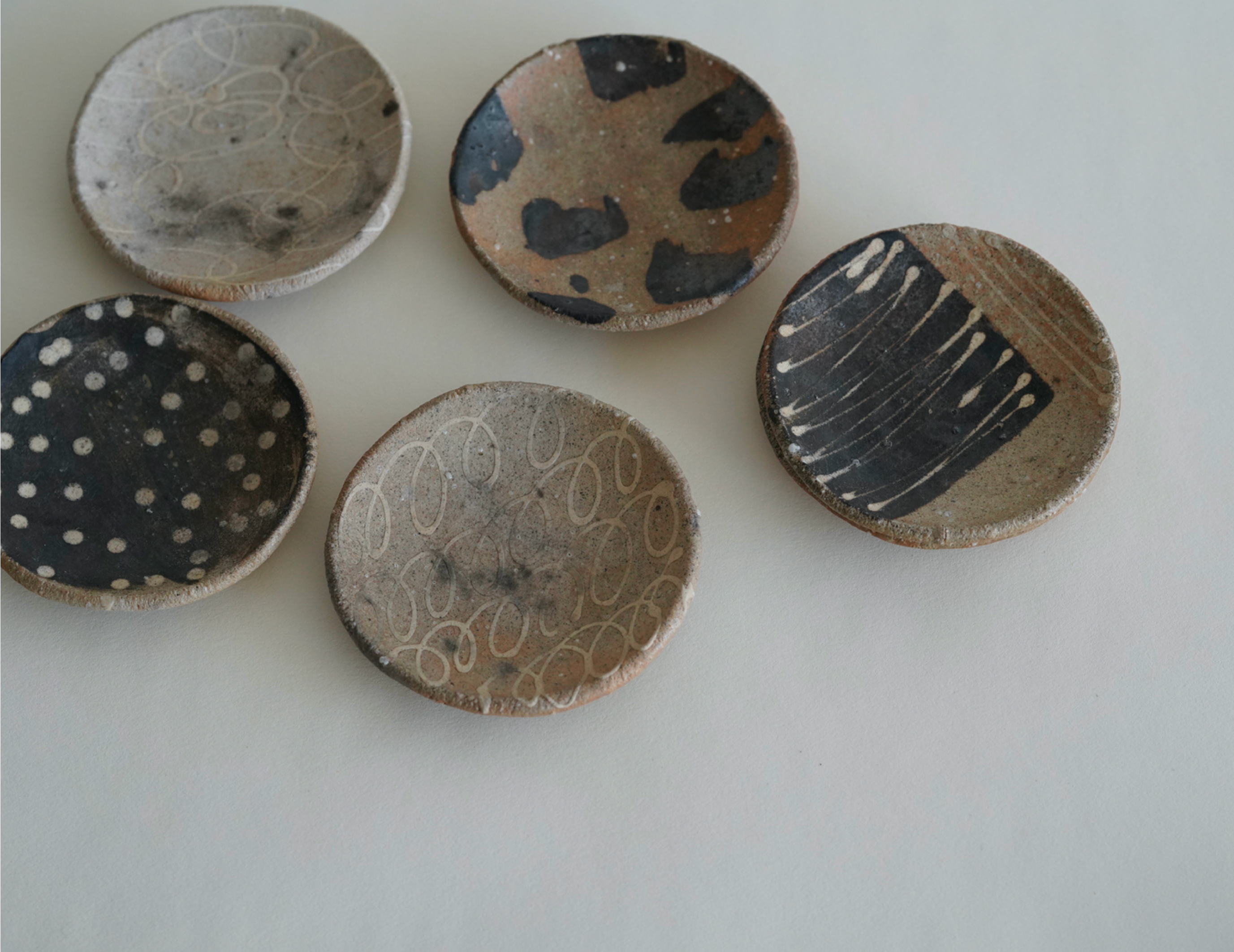 十场天伸:生活于神户,专注于slipware的创作。slipware又被叫做泥釉,通过适度调和的水,将呈现出泥浆状的化妆土浇淋在陶器上进行装饰。相当于将陶器作为画布,把化妆土当做颜料作画的创作。是asuka的老公。