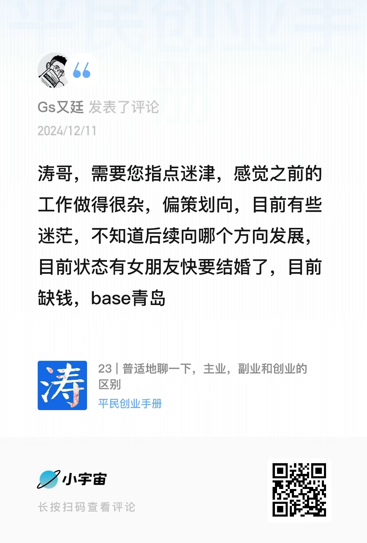 今天周五,又是我们固定的宠粉专栏,我在评论区选出了3个有代表性的问题,如果你有相关的疑问,快来收听本期内容,可以点击时间戳,一键直达你的问题,希望能对你有所帮助,给你一些启发和思考,话不多说,直接开答,