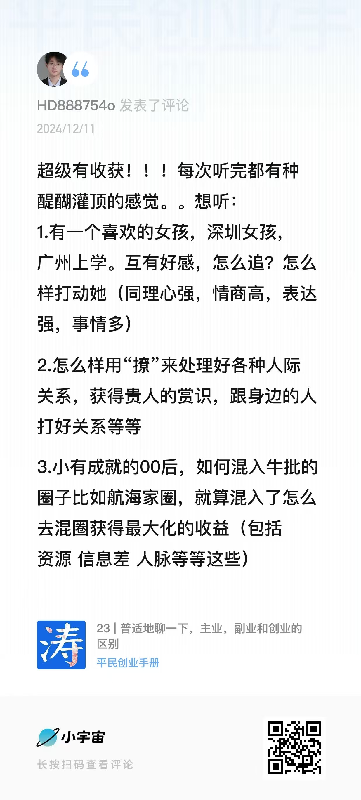 小宇宙热门评论...