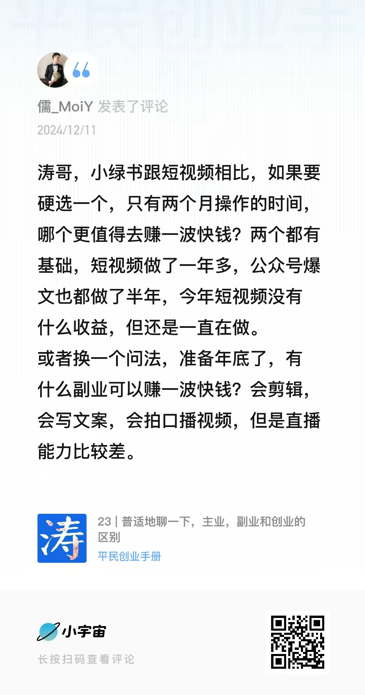 - 00:27 Q1:职场人如何找副业?