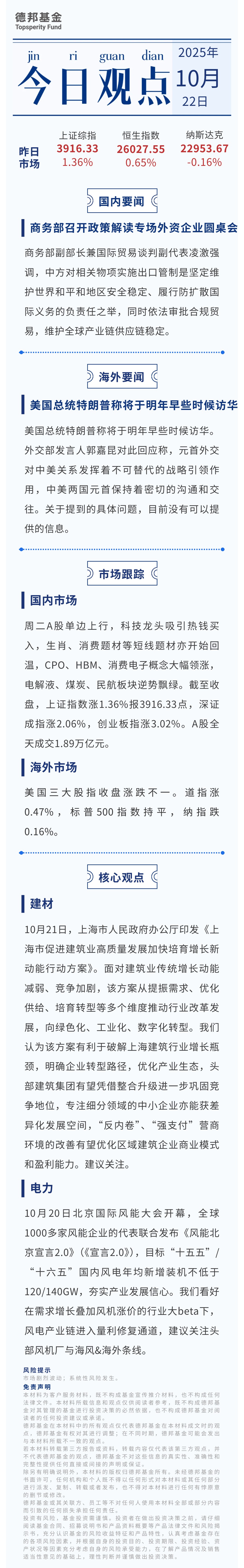 10月22日财经速递,带您最快跟踪板块表现和市场资讯!