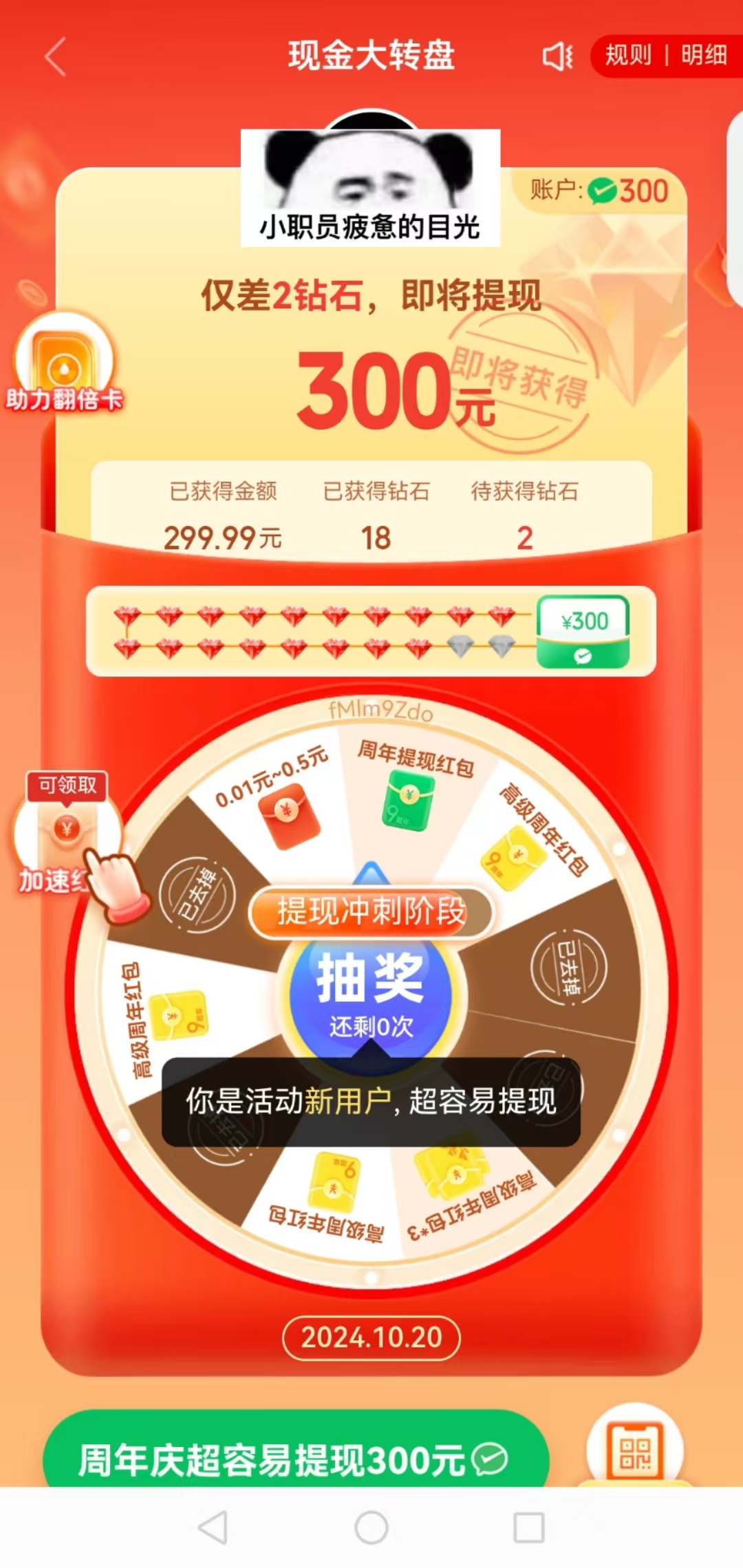起因是帮我妈抢300元礼包,点击链接进去就被引导一步步抽奖,开始很顺利,马上就凑齐了300元,殊不知钱齐了又要凑钻石,最后差两颗钻石💎我放弃了,我怕钻石齐了又要凑宝石了。