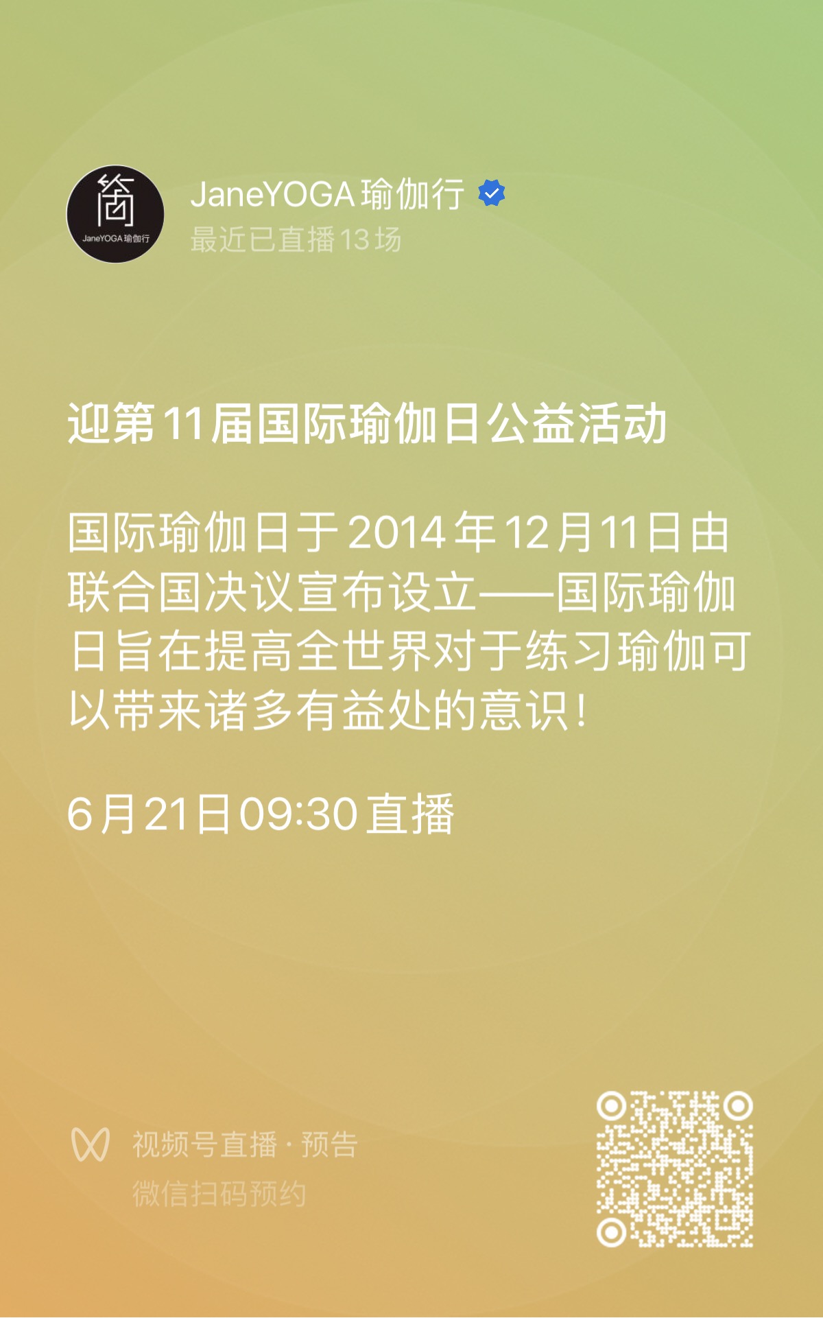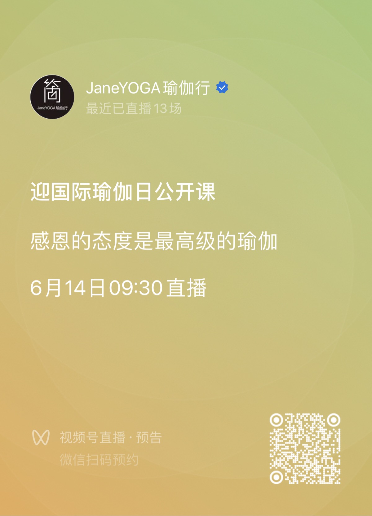 公众号&视频号直播:JaneYOGA瑜伽行 Jane瑜伽艺术生活馆