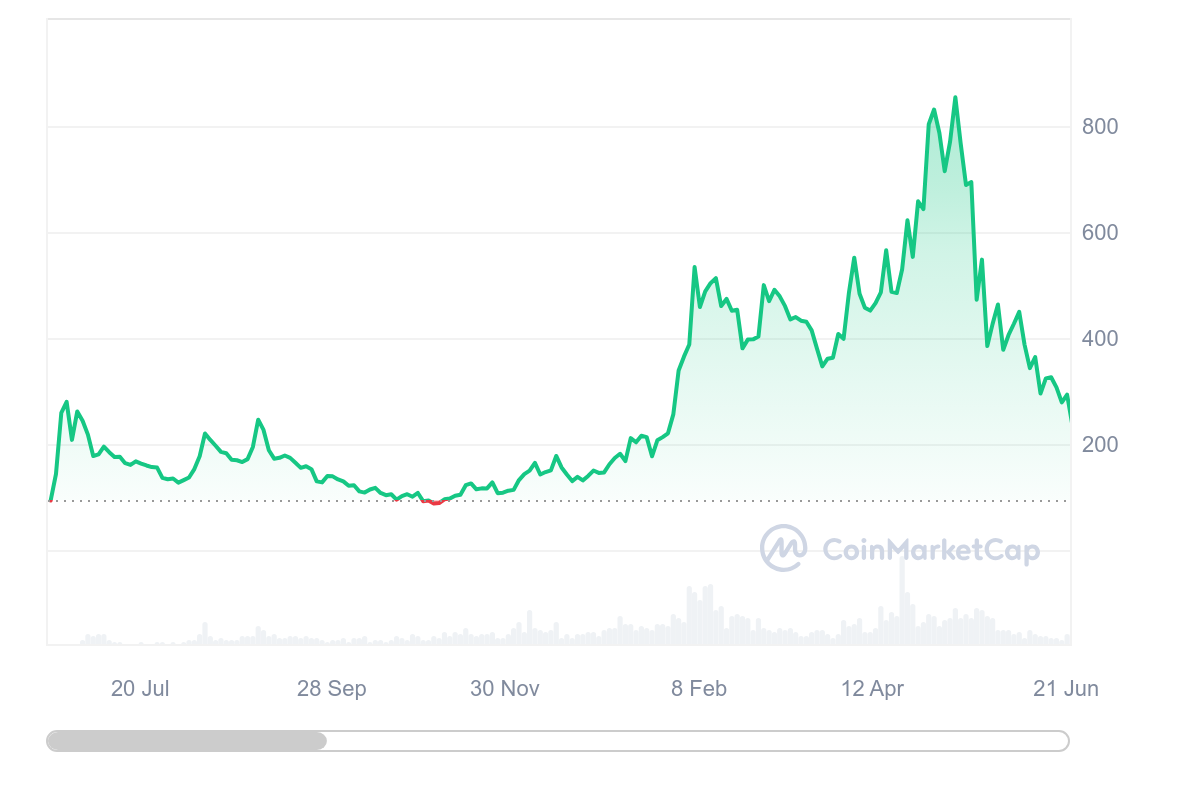 $COMP $YFI 在 2020 年发币的后价格一路上涨,为挖矿用户带来几十倍的回报: