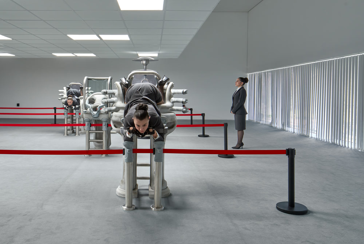 在安娜·乌登伯格的展览中,艺术从来都不只是观看的对象,而是一个漩涡——会将你卷入一场关于消费主义、性别与权力的讨论。2023 年,她在纽约的《欧陆早餐》展览曾席卷 TikTok,而这次在上海油罐艺术中心的展览自开幕起,就在社交媒体上掀起热议。讨论从艺术创作对消费主义与性别凝视的深刻探索,延伸到演员鬓角贴上面部提拉贴的争议,甚至引发了网友对艺术家种族歧视的质疑。