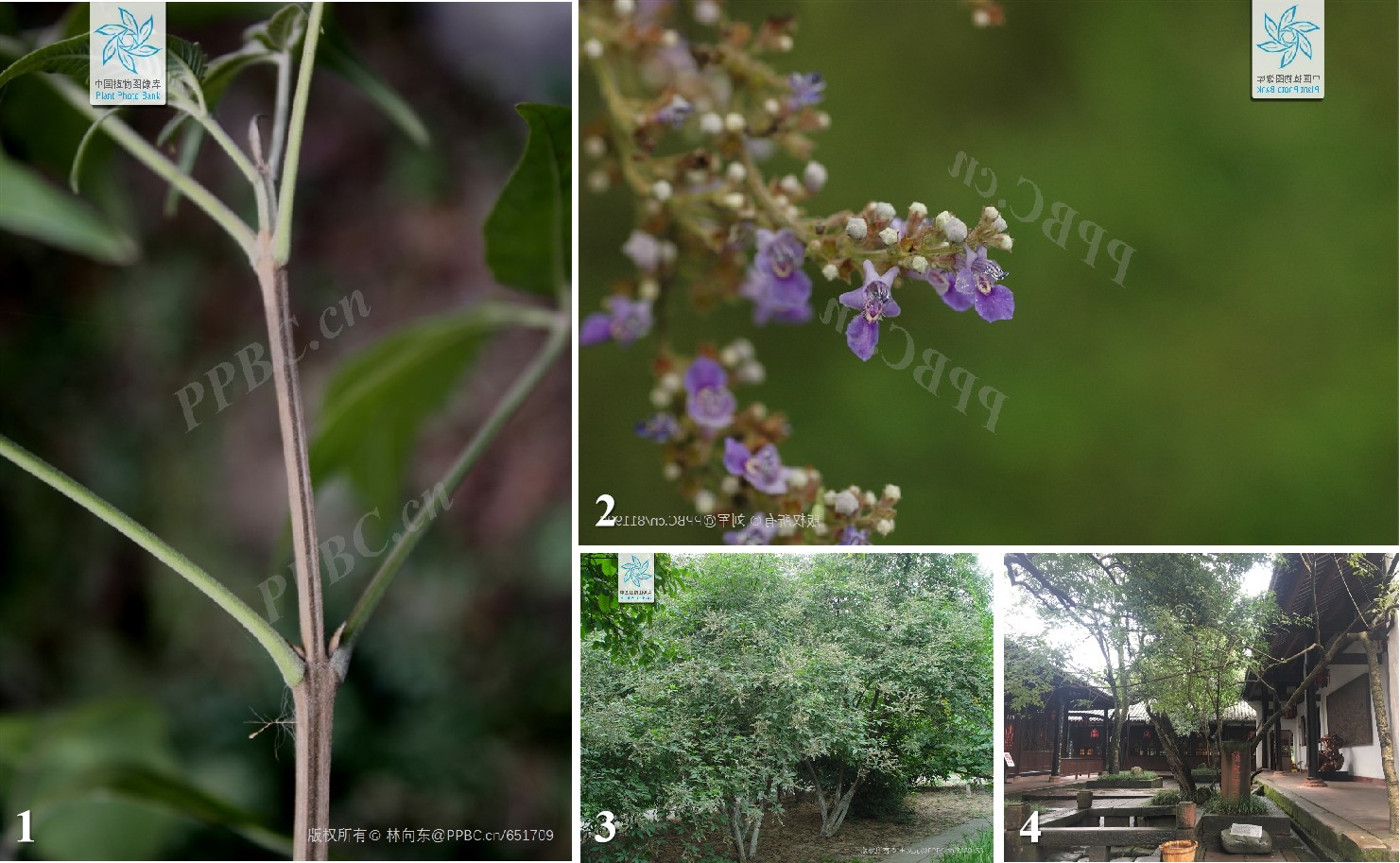 图1:荆条;图2:黄荆花;图3:长成乔木的黄荆;图4:三苏祠的黄荆(图源见水印)
