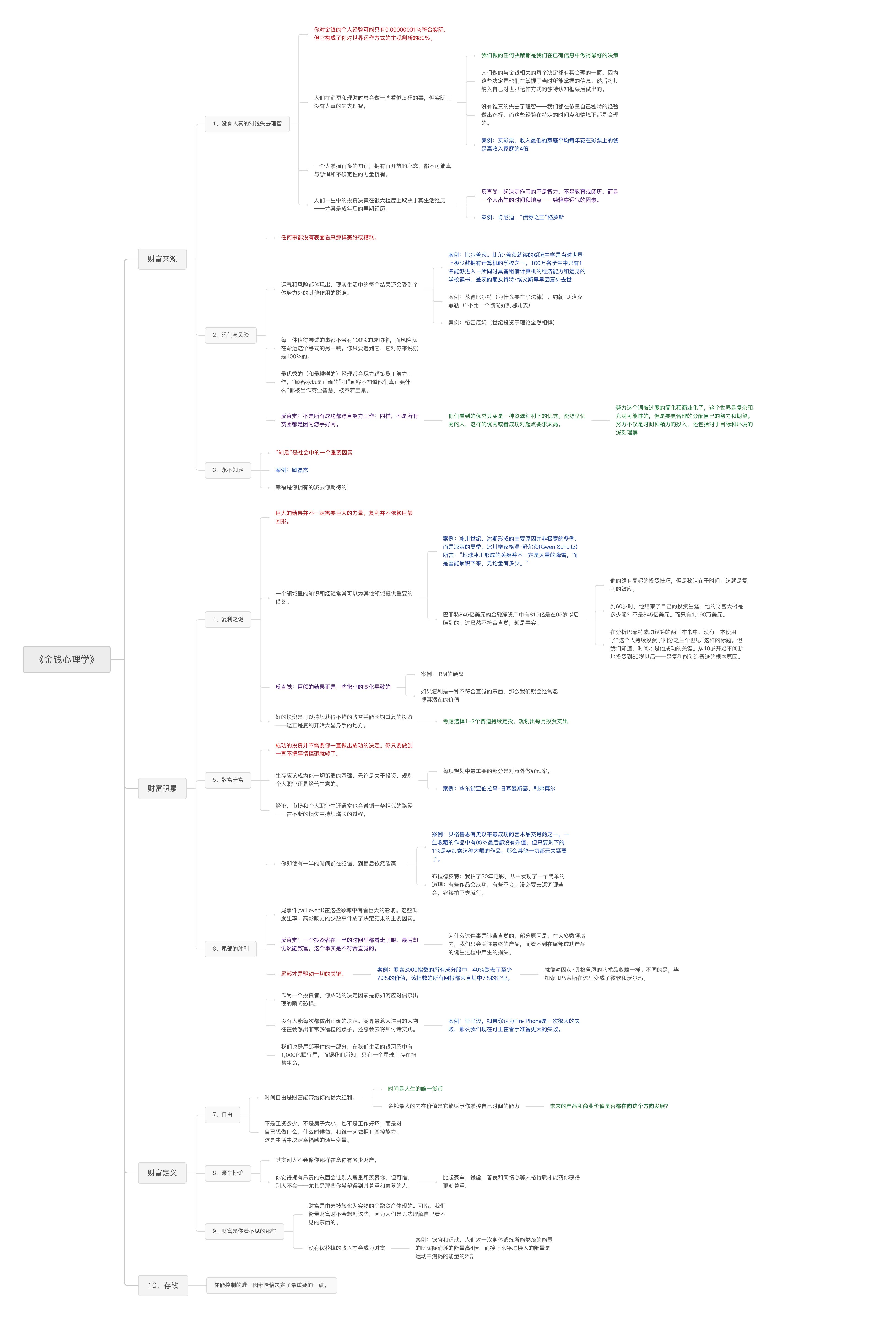 今天把《金钱心理学》的1-9章,用导图的方式又梳理了一遍。直接粘贴一张整理图片