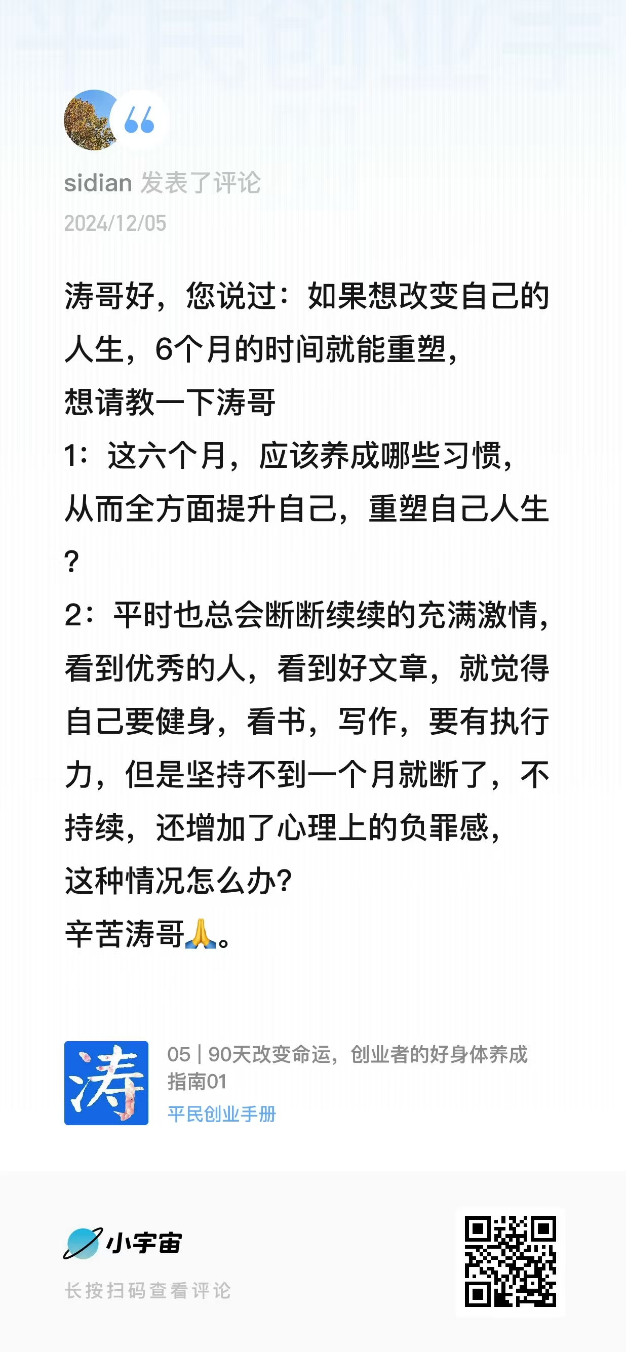 - 22:30 Q3:如何克服间歇性努力,在6个月内重塑人生?