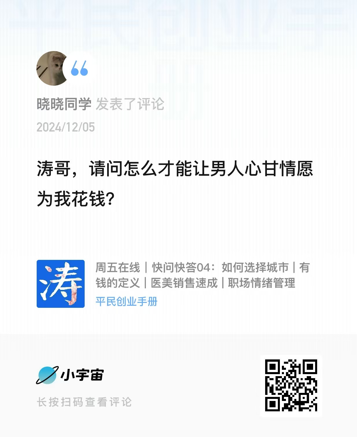 如果你有相关的疑问,快来收听本期内容,可以点击时间戳,一键直达你的问题,希望能对你有所帮助,给你一些启发和思考,话不多说,直接开答,