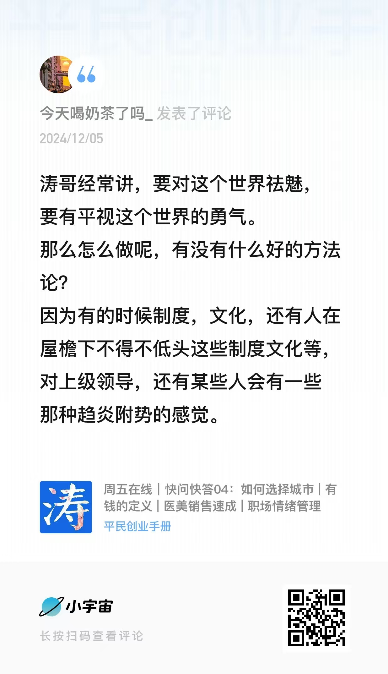 - 00:24 Q1:如何对世界祛魅,拥有平视它的勇气?