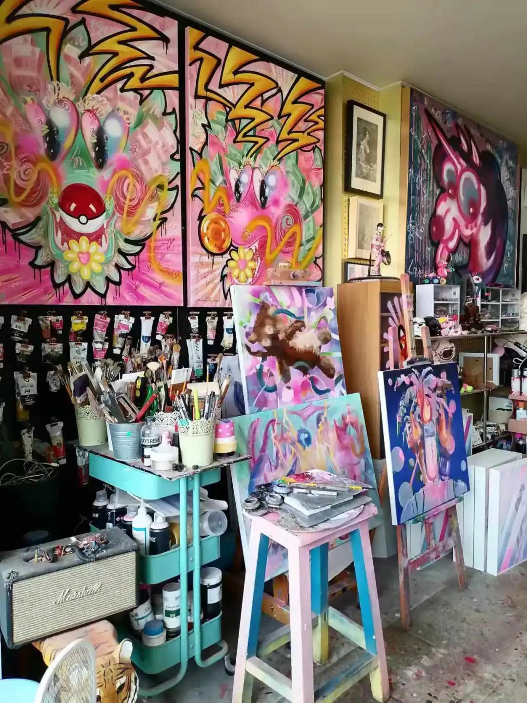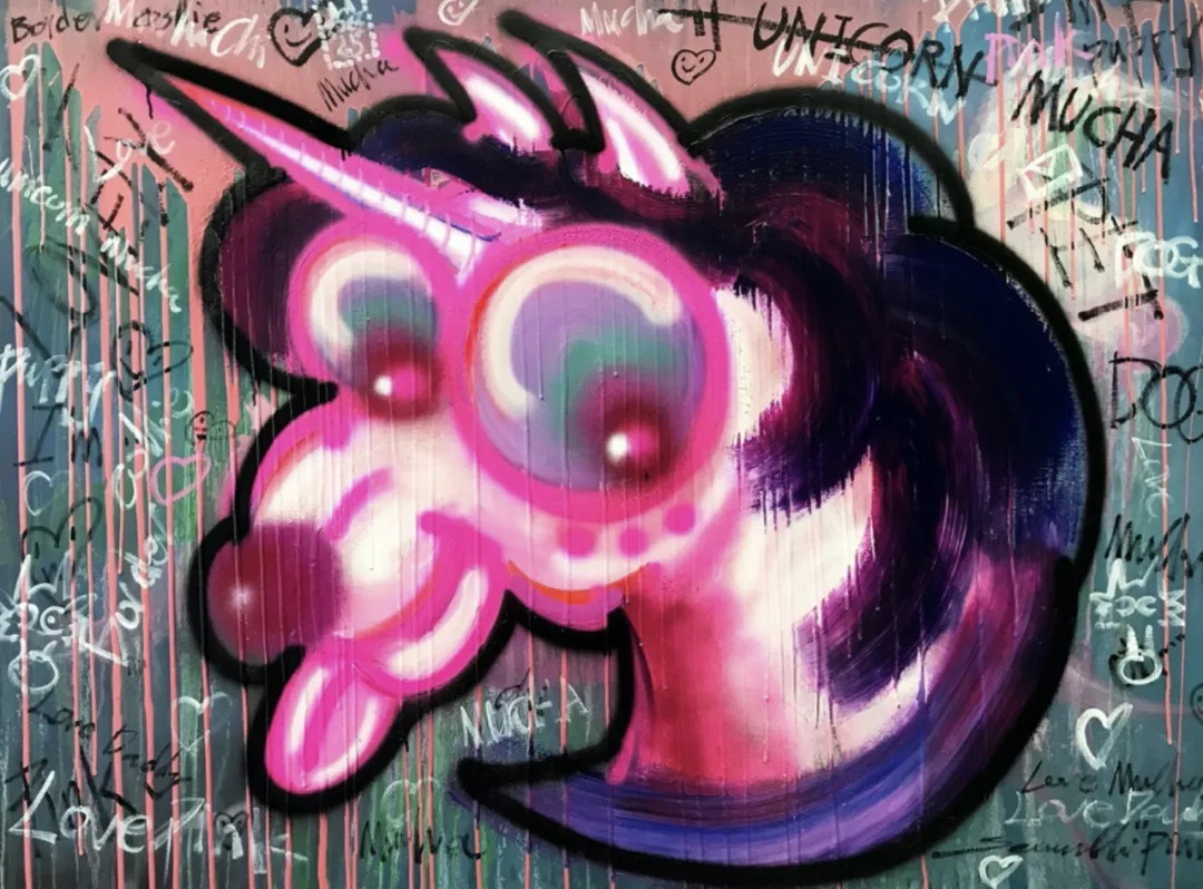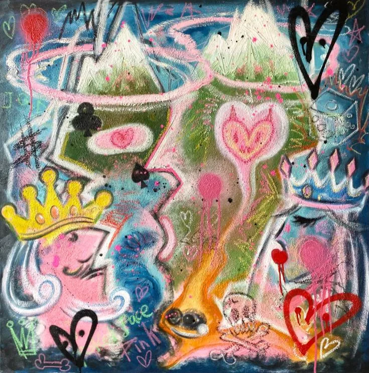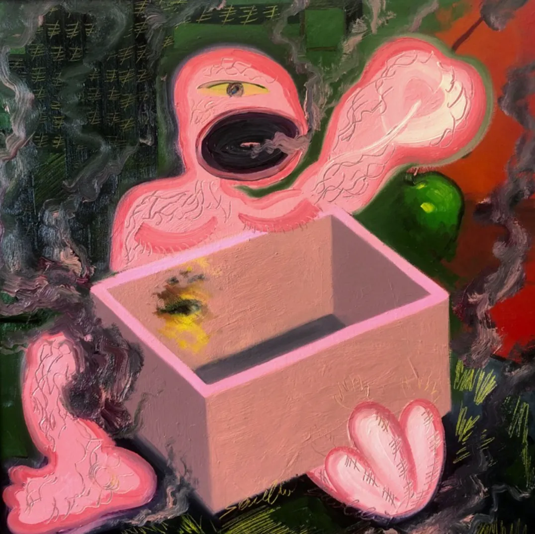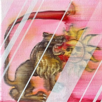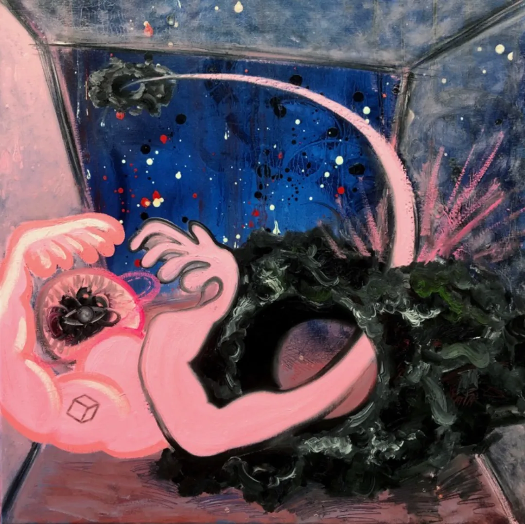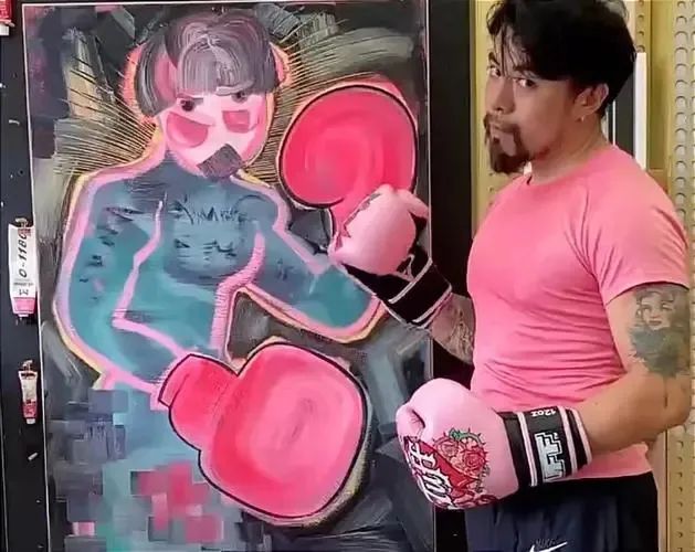 作品风格以油画和喷漆的形式相结合来诠释脑海中的世界。粉红色在艺术家心中代表爱与未来,也用作品传播爱与未来。“生活不只有艺术,但艺术可以让我更好的去生活”用创作这种方式跟这个世界交流,一幅作品便是自己的一段思想,一个思考的节点和未来的一个画面。