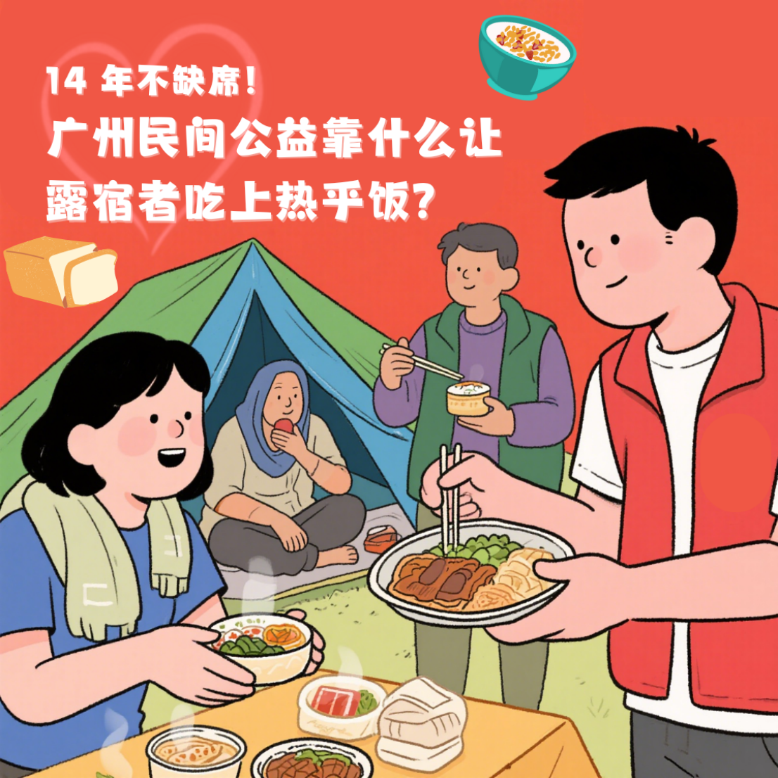 在广州车水马龙的街头,立交桥下的纸箱、公园长椅的褶皱衣物、24 小时便利店的角落,藏着一群特殊的 “城市住客”—— 露宿者。他们或是遭遇生活变故的异乡人,或是习惯了街头自由的长者,在钢筋水泥间寻找栖身之所。而每周三的傍晚,总有一群普通人带着保温箱、编织袋悄然出现,为他们递上热乎的饭菜、御寒的衣物,这是民间公益组织「悦善一百」坚持了 14 年的爱心行动。