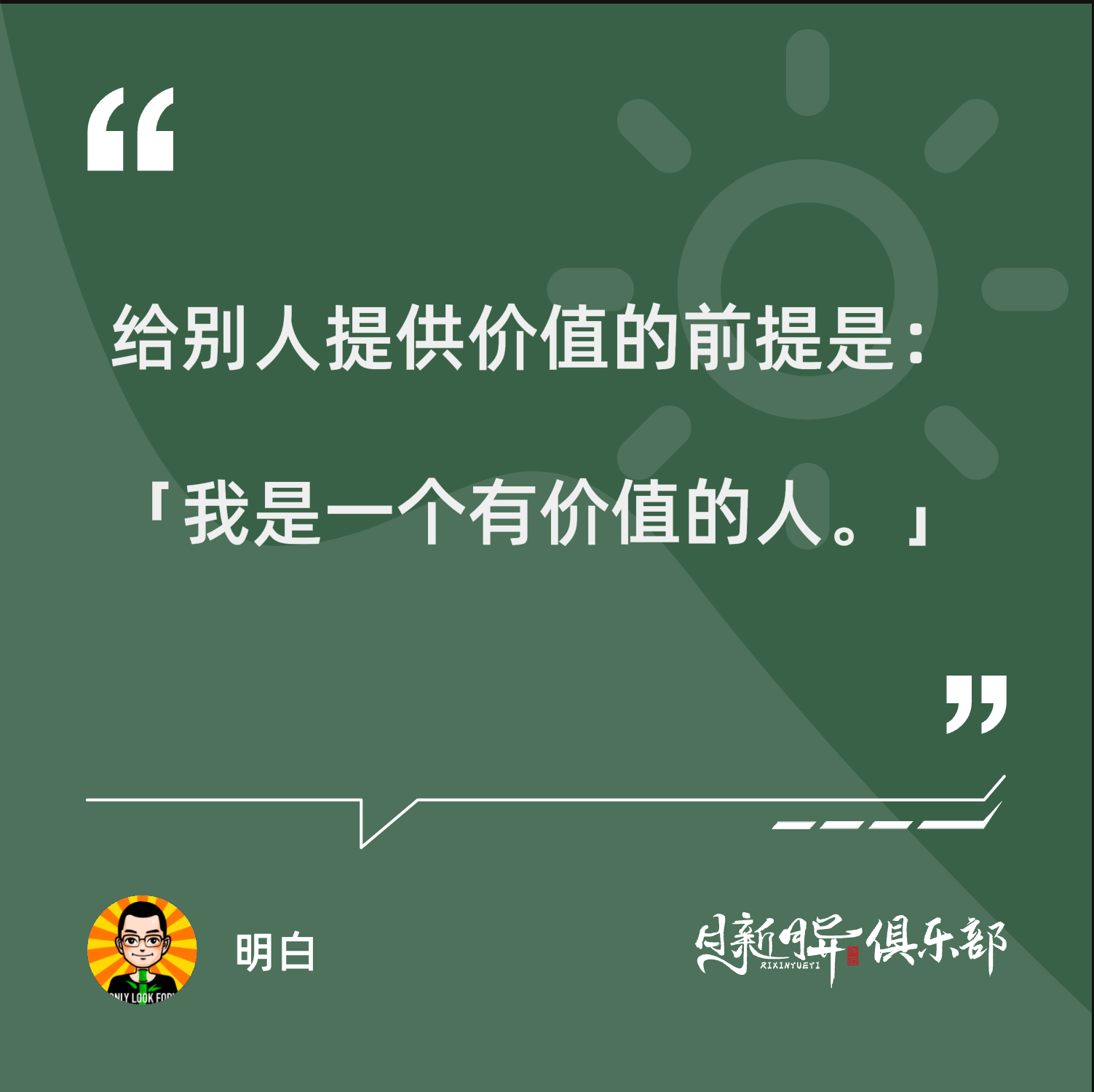 给别人提供价值的前提是,我是一个有价值的人。我在我要写的这件事情上,我有过真实的经验、我做成过,所以我才有资格能够给别人提供价值,我才有能力给别人提供价值。