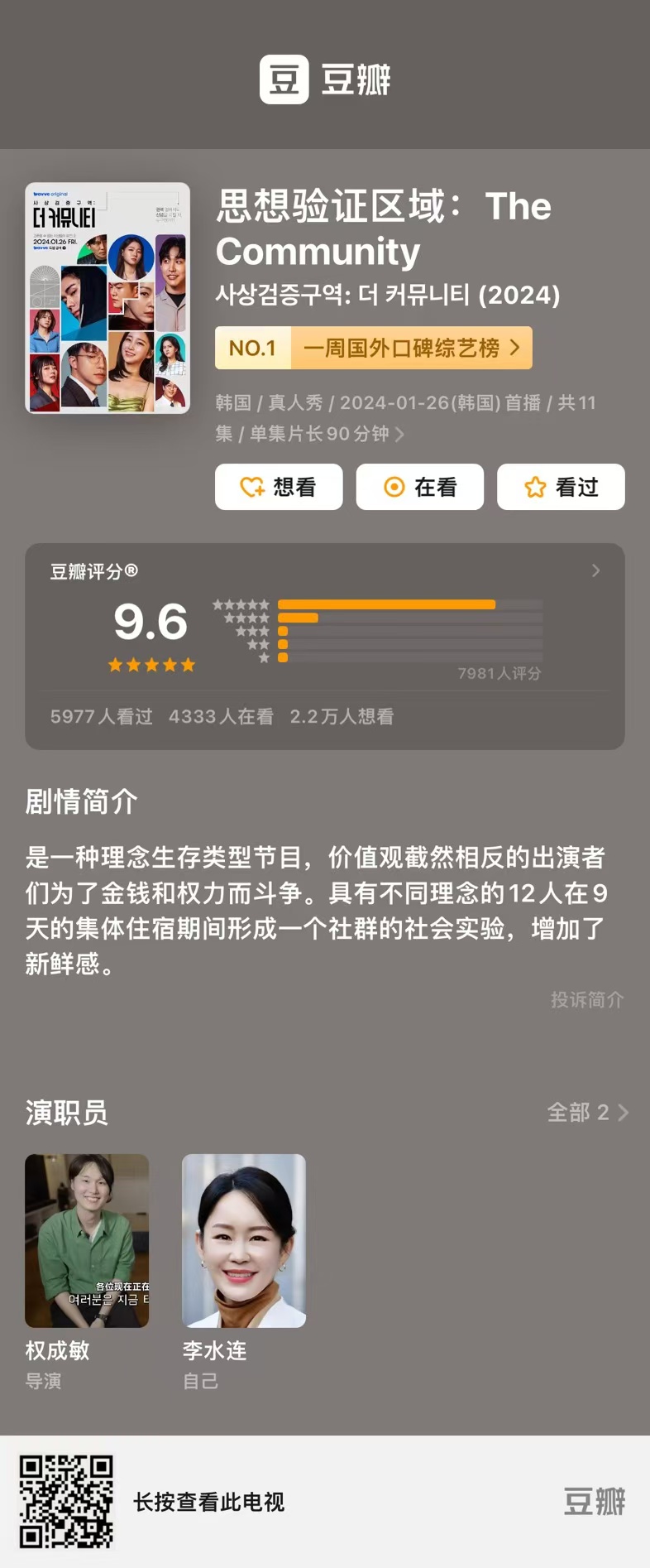 Vol.10 海浪涌起x人生玩家串台啦!这一期关于获得青龙奖的韩国综艺《思想验证区域》(The Community),节目中通过模拟真实政治场景和社会议题探讨,不断验证人性和制度的灰度。