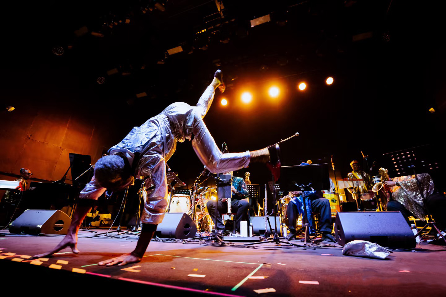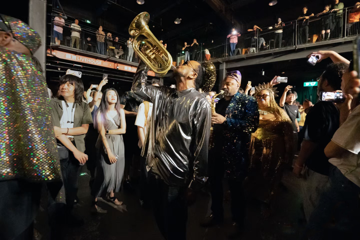 上周去了成军七十多年的美国殿堂级传奇自由爵士大乐队Sun Ra Arkestra 北京的现场演出,对于一个第一次真正意义上去爵士乐现场的我也来说还是非常新奇,如果要说能听懂多么深刻的含义,那是假的,完全是在一种感受上去体会自由爵士,体会乐队之间的配合,现场的互动感,以及他们将理念诉诸在人声、动作、服装、乐器。Sun Ra Arkestra 此行来华的成员一共13人,乐队核心成员,刚发行了个人首张录音室专辑的101岁的萨克斯Marshall Allen缺席了此次巡演。如今实质性领袖是Knoel Scott。