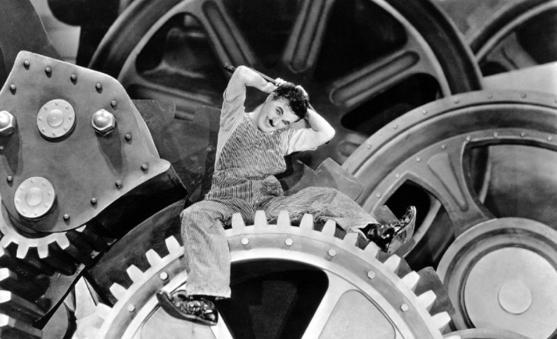 1931年的某个深夜,卓别林在瑞士别墅里反复播放一段录音——那是他对着麦克风说的第一句话:“你们听见了吗?”此时,有声电影已席卷好莱坞四年,但他坚持认为“声音会杀死小人物夏尔洛的诗意”。直到1936年拍摄《摩登时代》,他才做出妥协:影片保留部分对白,但主角夏尔洛依然沉默。电影开场的齿轮特写镜头,隐喻工业化对人的异化;流水线上拧螺丝的工人,动作逐渐机械化,最后连路人的纽扣都想用扳手拧紧。这部影片在纳粹德国、法西斯意大利被禁映,却在美国引发失业工人共鸣——大萧条时期,许多观众写信说:“夏尔洛是我们唯一能笑出来的理由。”