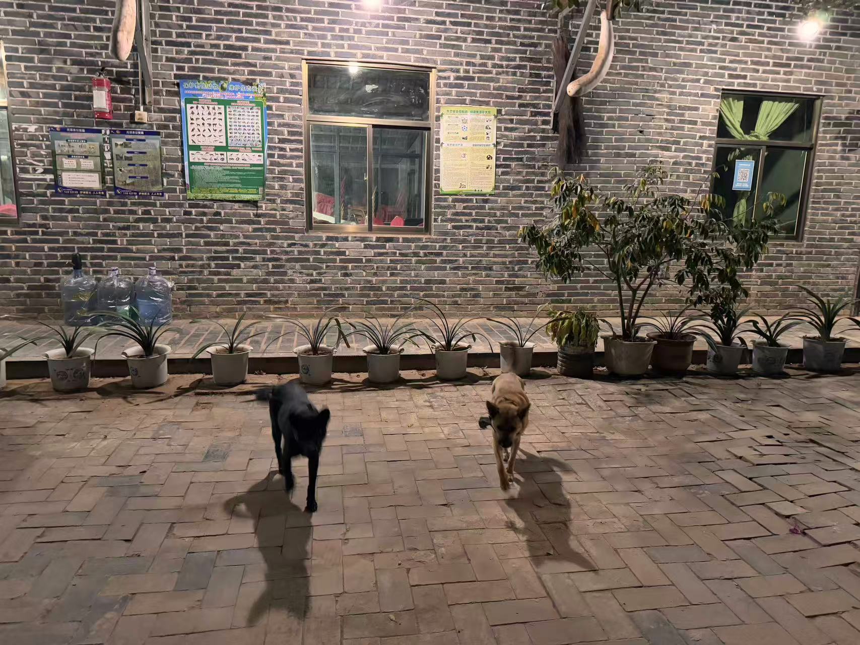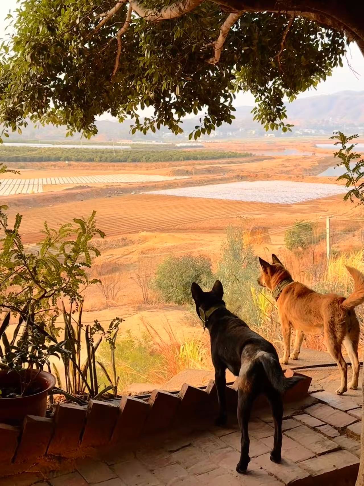 住处在水库附近,后院的景色苍凉而广阔,几片未被收编的土林迎着第二天早上的朝阳。大狗们抢先占据了观景的最佳点位,幸福的眯着眼晒着初升的斜阳。