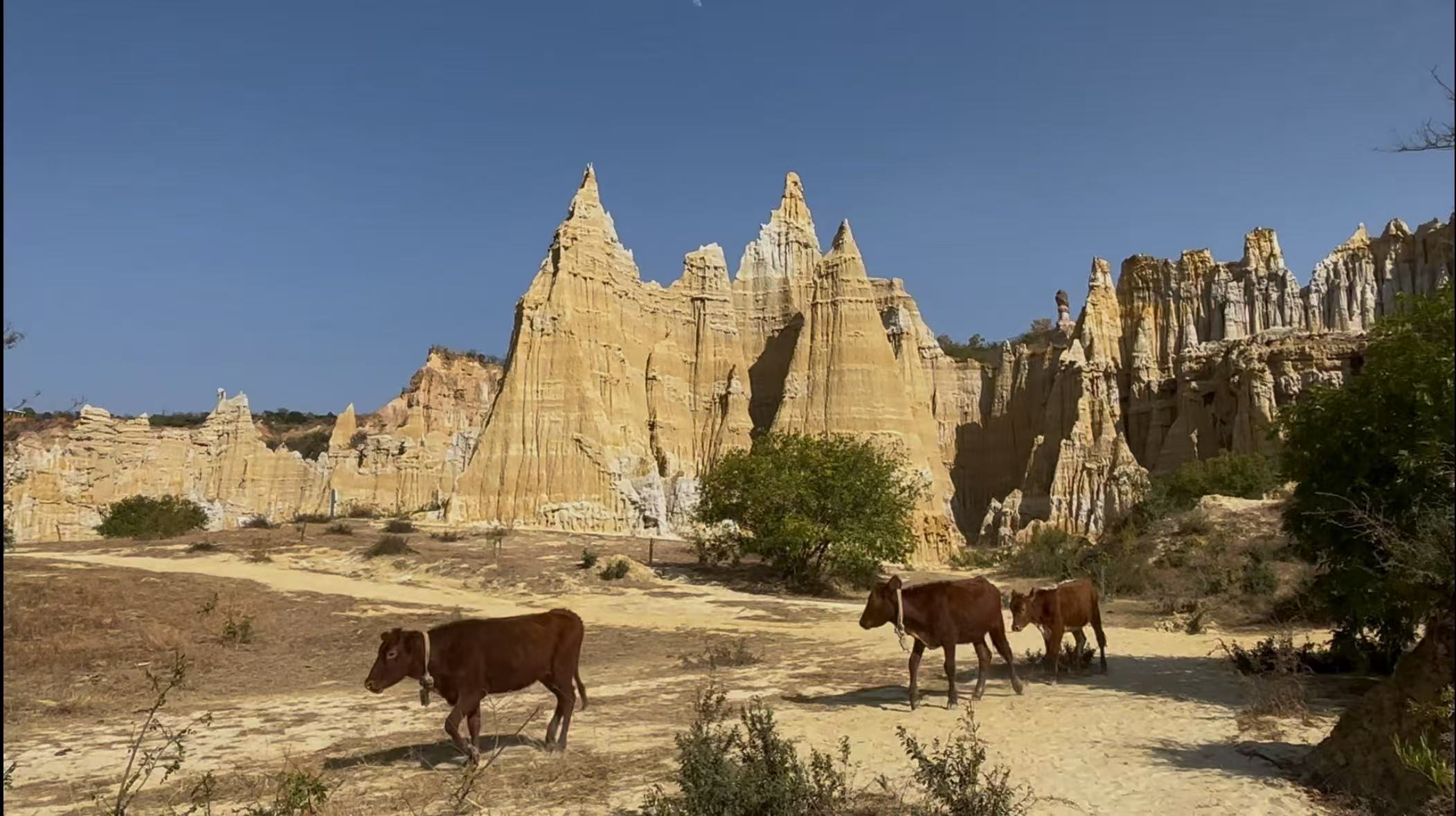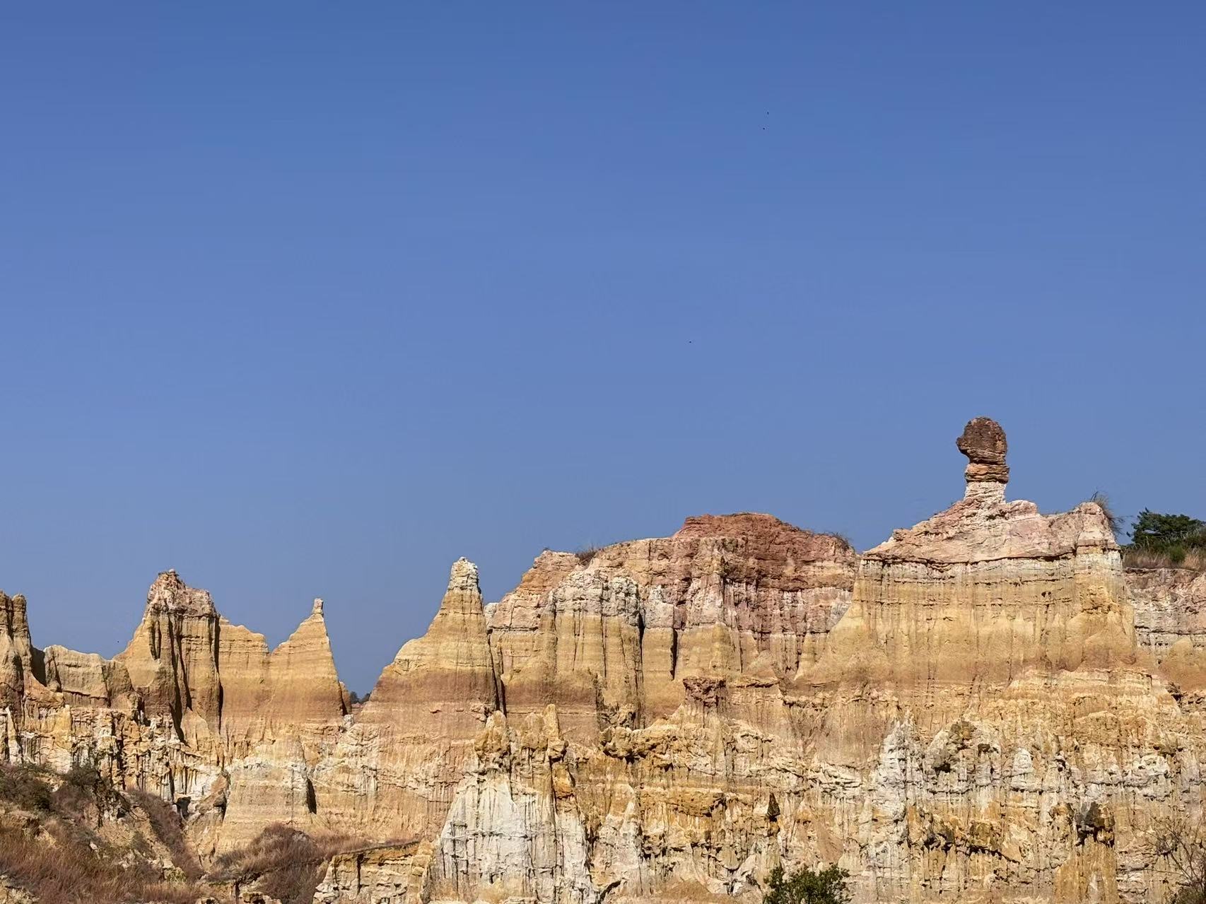 懒洋洋的暖阳,大片的油菜花,不咋蓝的暧昧的天——这一切都和土林太搭了!多年的克制涵养以及有点风沙的大风阻止了我们兴奋大喊的欲望。