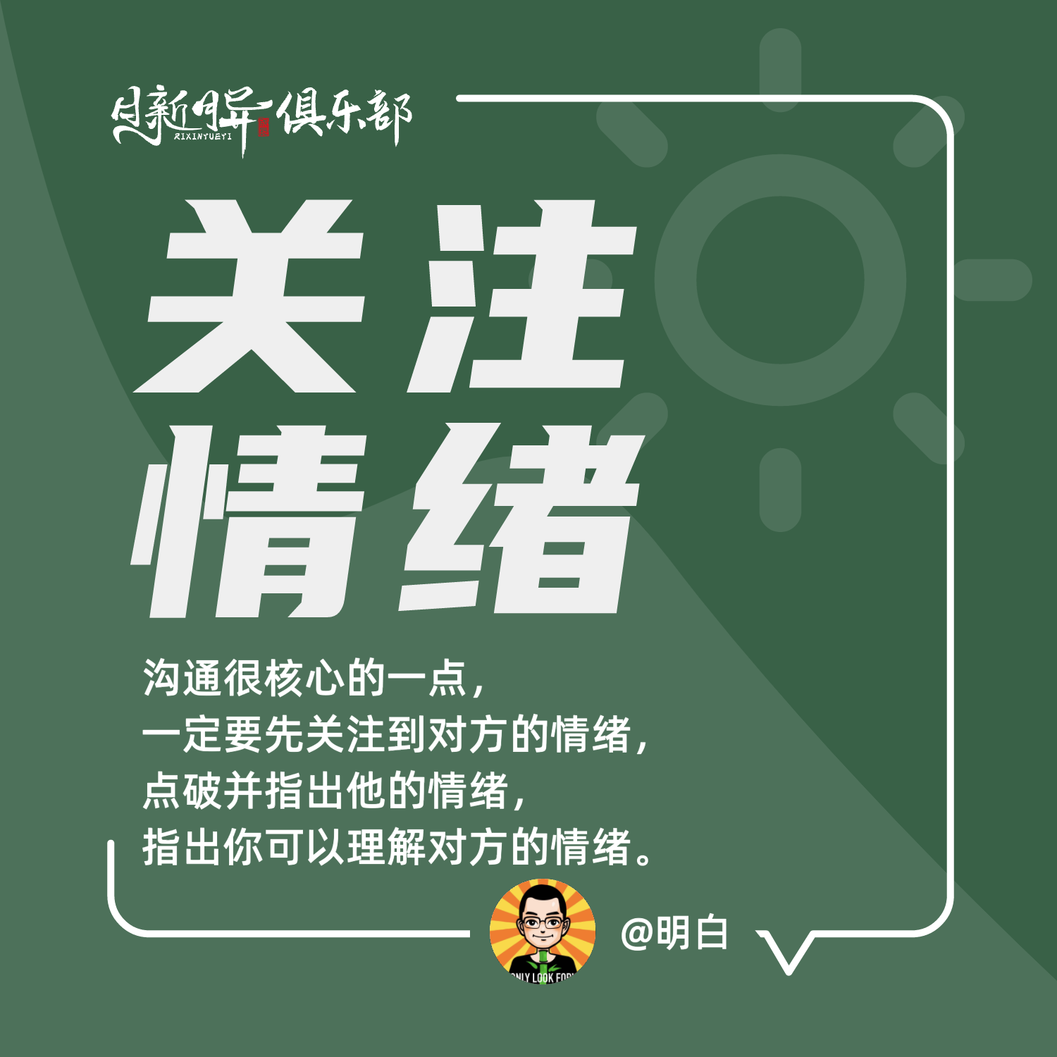 所以沟通的时候很核心的一点,一定要先关注到对方的情绪,然后点破他的情绪,指出他的情绪,指出你可以理解对方的情绪。