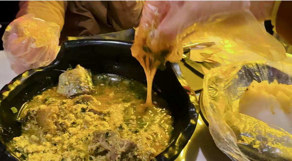 三人“徒手围攻”一份fufu,吃出了“你泥中有我,我泥中有你”的深厚情谊(和满手黏腻)!
