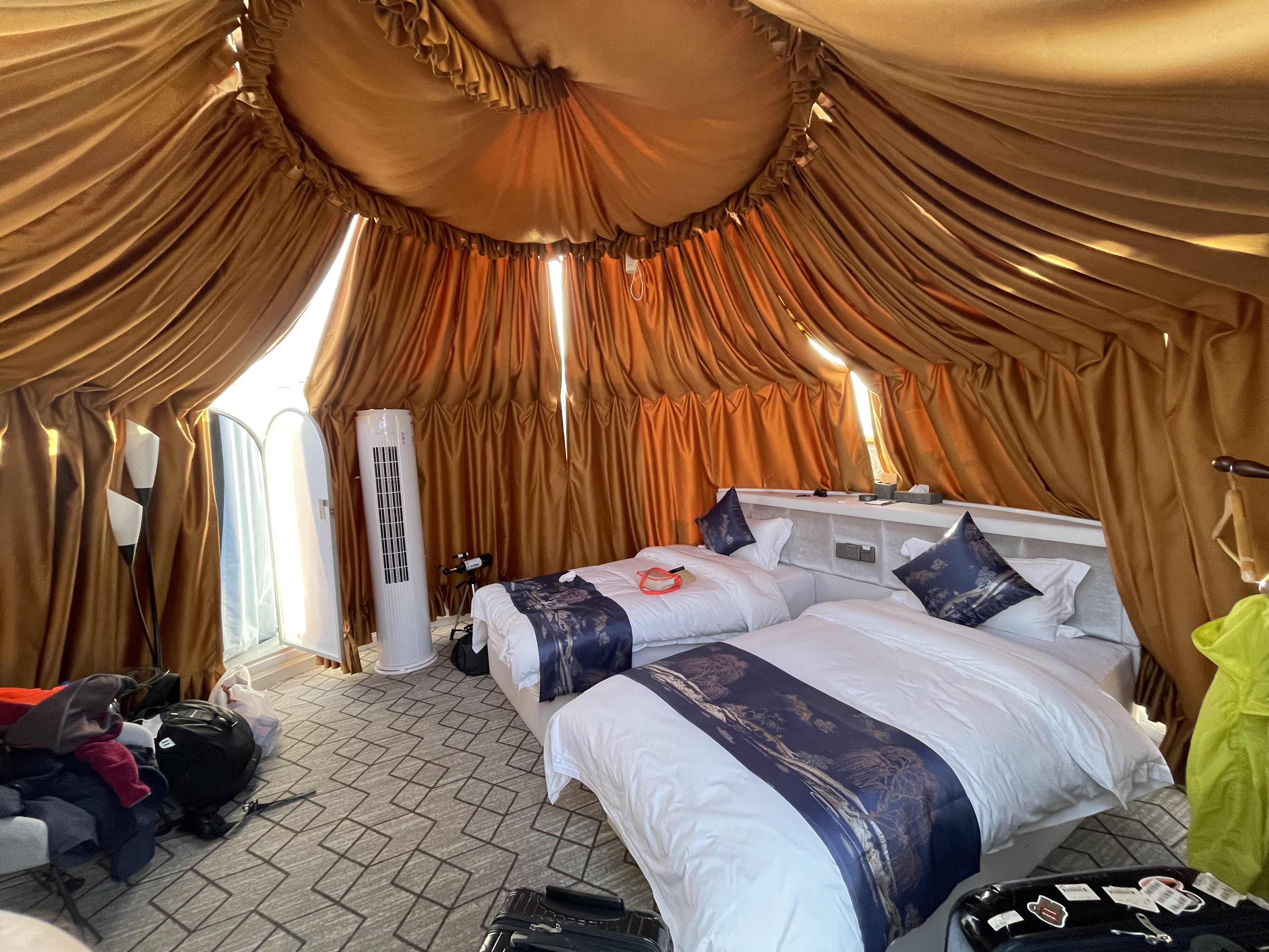 今晚住在茶卡盐湖的星空基地,玻璃屋晶莹剔透的小壳儿,夜晚顶部窗帘可以拉开看星空。城市里的孩子能看到漫天繁星可太不容易了!