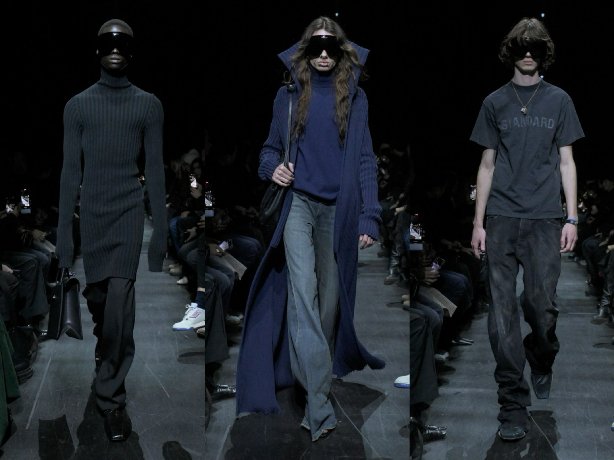 接下来是时尚界的巴黎世家。他们的冬季25系列发布秀在一个由后台幕布构筑的迷宫中举行,象征着创意的交错路径。这一季,巴黎世家以「标准」为核心,重新审视传统服装制作原则。他们与PUMA合作推出了运动套装、飞行夹克等单品,将高级制衣工艺与运动美学完美结合。此外,他们还对商务正装和经典服饰进行了颠覆性重构,比如带有「虫蛀」质感的西装,以及极简复古风格的运动鞋。通过这些设计,巴黎世家在传统与创新之间建立了一种新的秩序,展现了时尚的无限可能性。