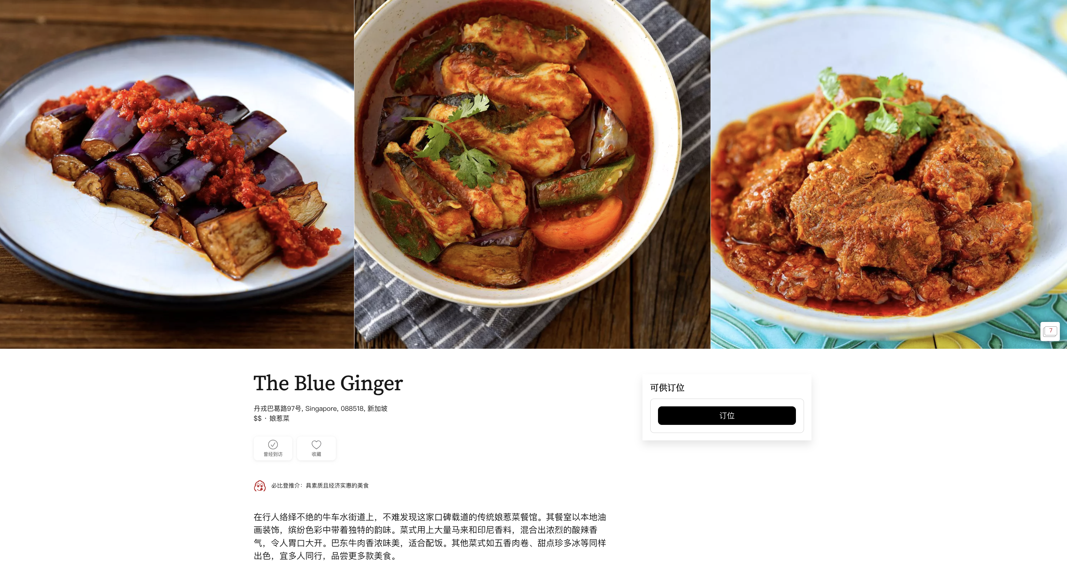 📌The Blue Ginger ——米其林必比登推荐的吃酸辣茄子的娘惹菜餐厅