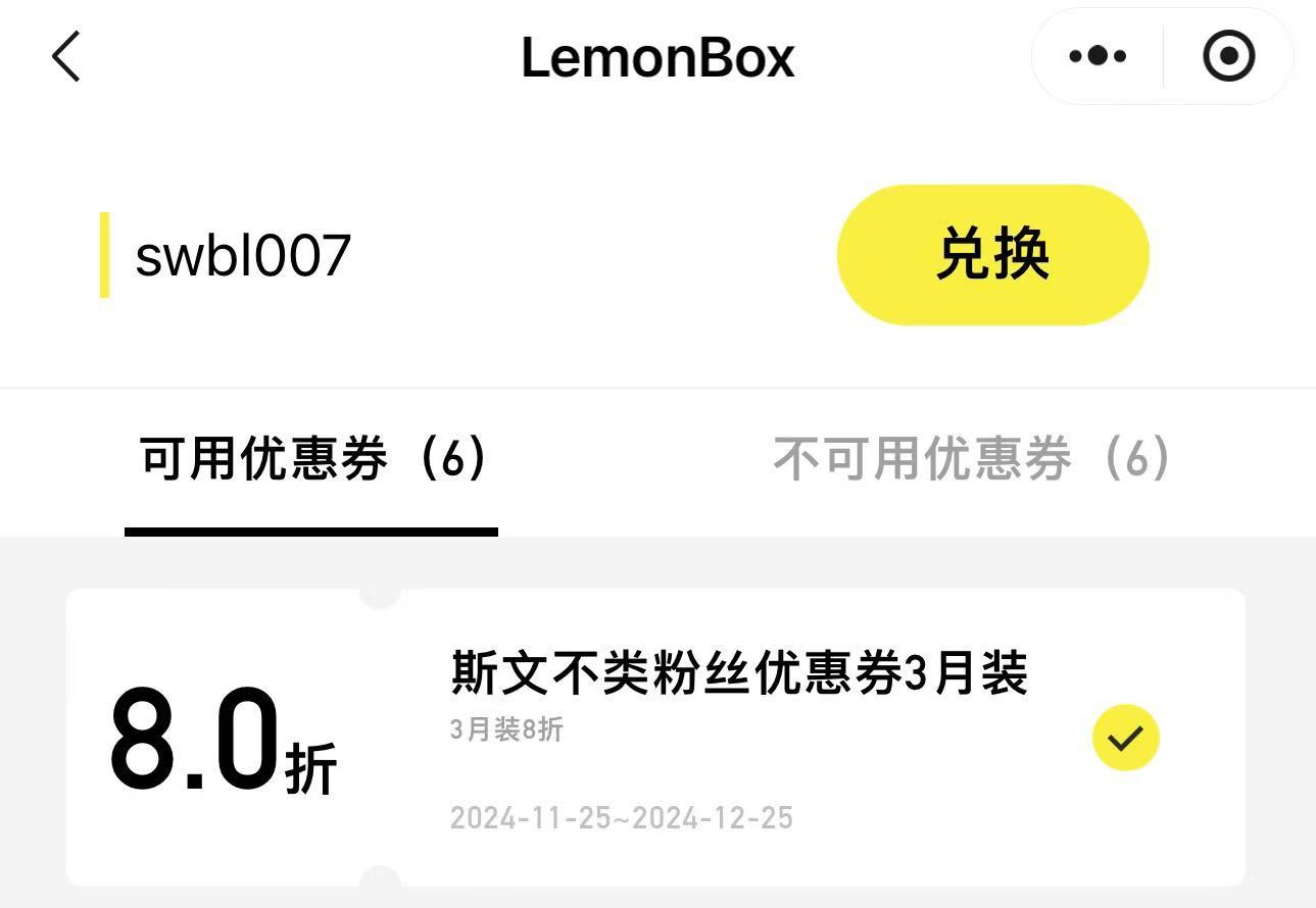 【LemonBox x 斯文不类】专属折扣领取方式: