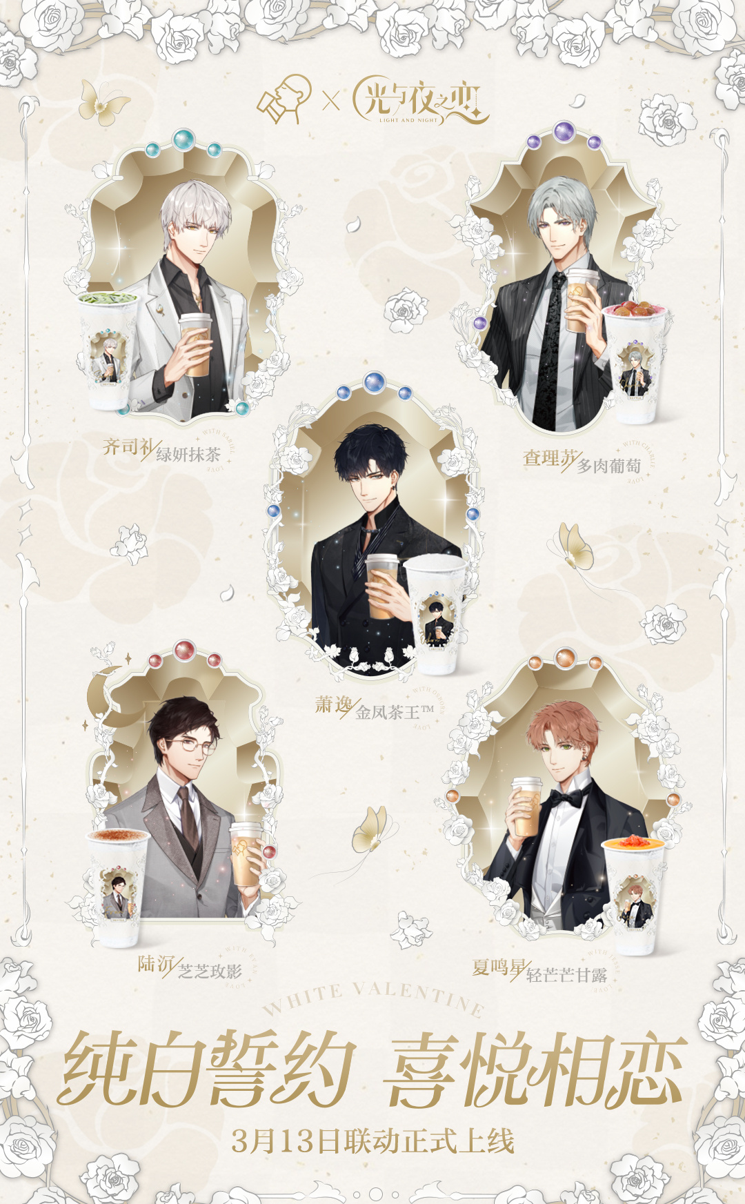 案例概述:喜茶在2024年上半年与恋爱手游《光与夜之恋》进行联名合作。此次联名不仅吸引了大量女性消费者的关注,还通过独特的“结婚”体验成功引发了消费者的购买热潮。联名当天订单排队数量超过800杯,预计等待时长超过600分钟,相关话题在微博上的阅读量高达2亿。
