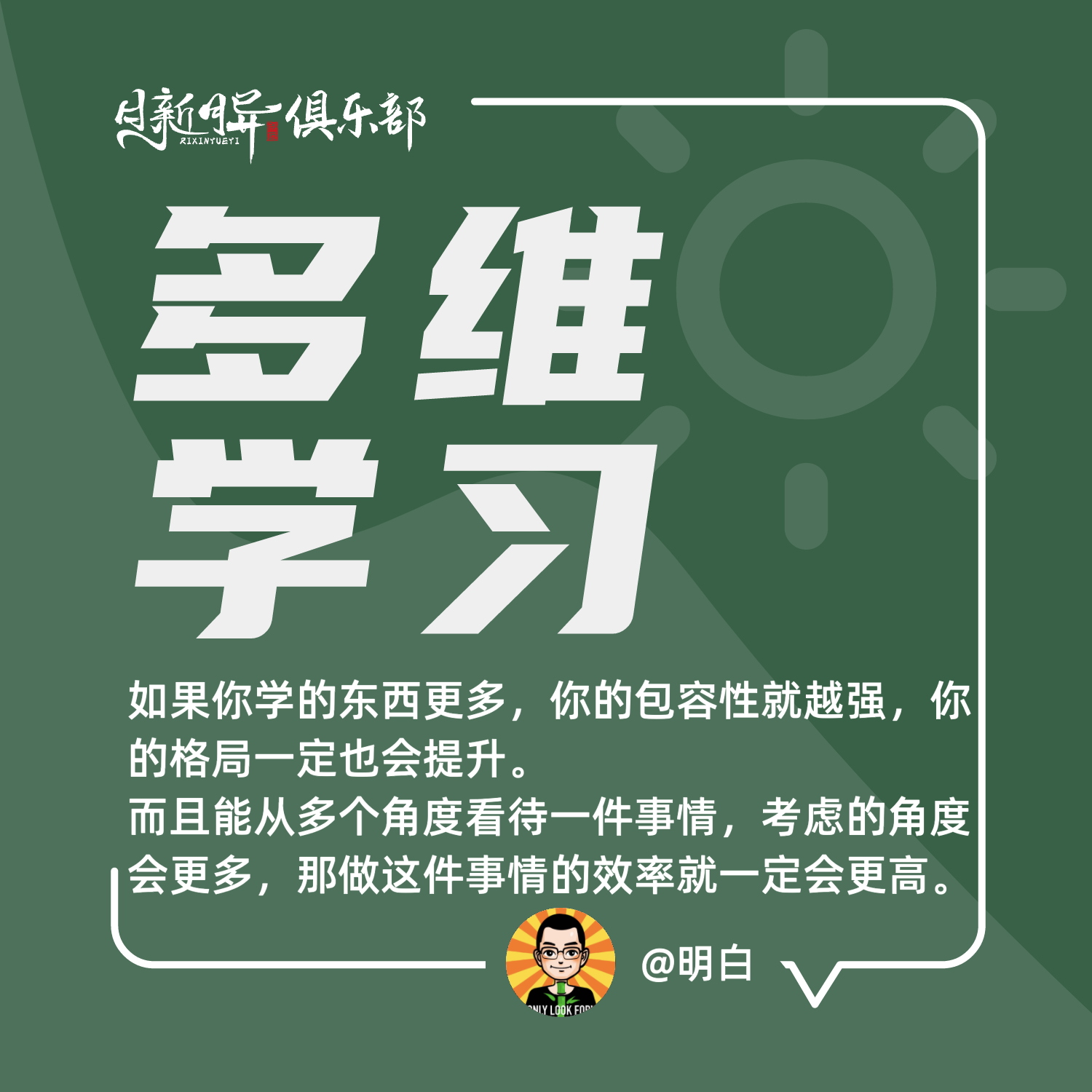 因为他做一件事情,他能获得很多个不同维度的成长,这也让我想到之前李笑来老师的一个概念,就叫做「多维度成长」。