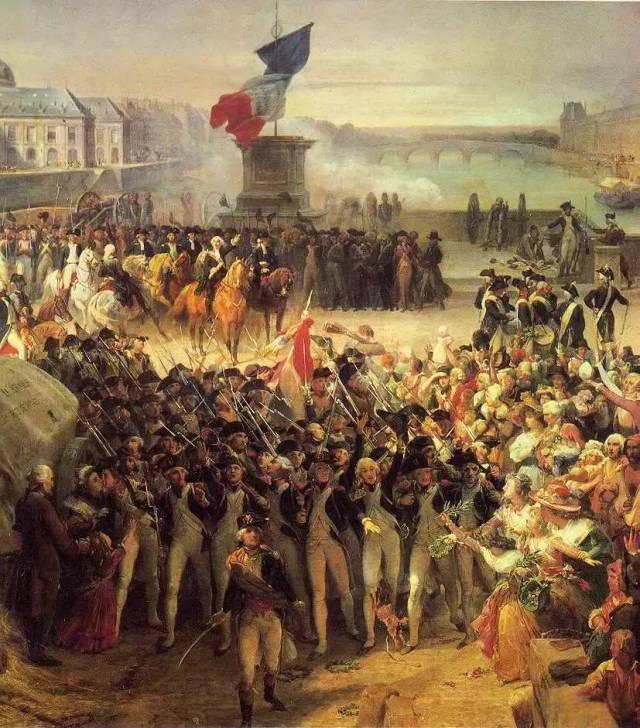 1789年7月14日,巴黎民众攻占巴士底狱,释放政治犯,标志着革命进入高潮。这座象征专制的堡垒被攻破时,城墙上飘起了国民议会的旗帜——蓝白红三色旗,后来成为法国国旗。巴黎的街头,人们举着火把游行,高喊“自由万岁!”“打倒暴君!”;外省的城市里,农民焚烧地契,拒绝向贵族交租;甚至连部分士兵也倒戈,加入革命的队伍。