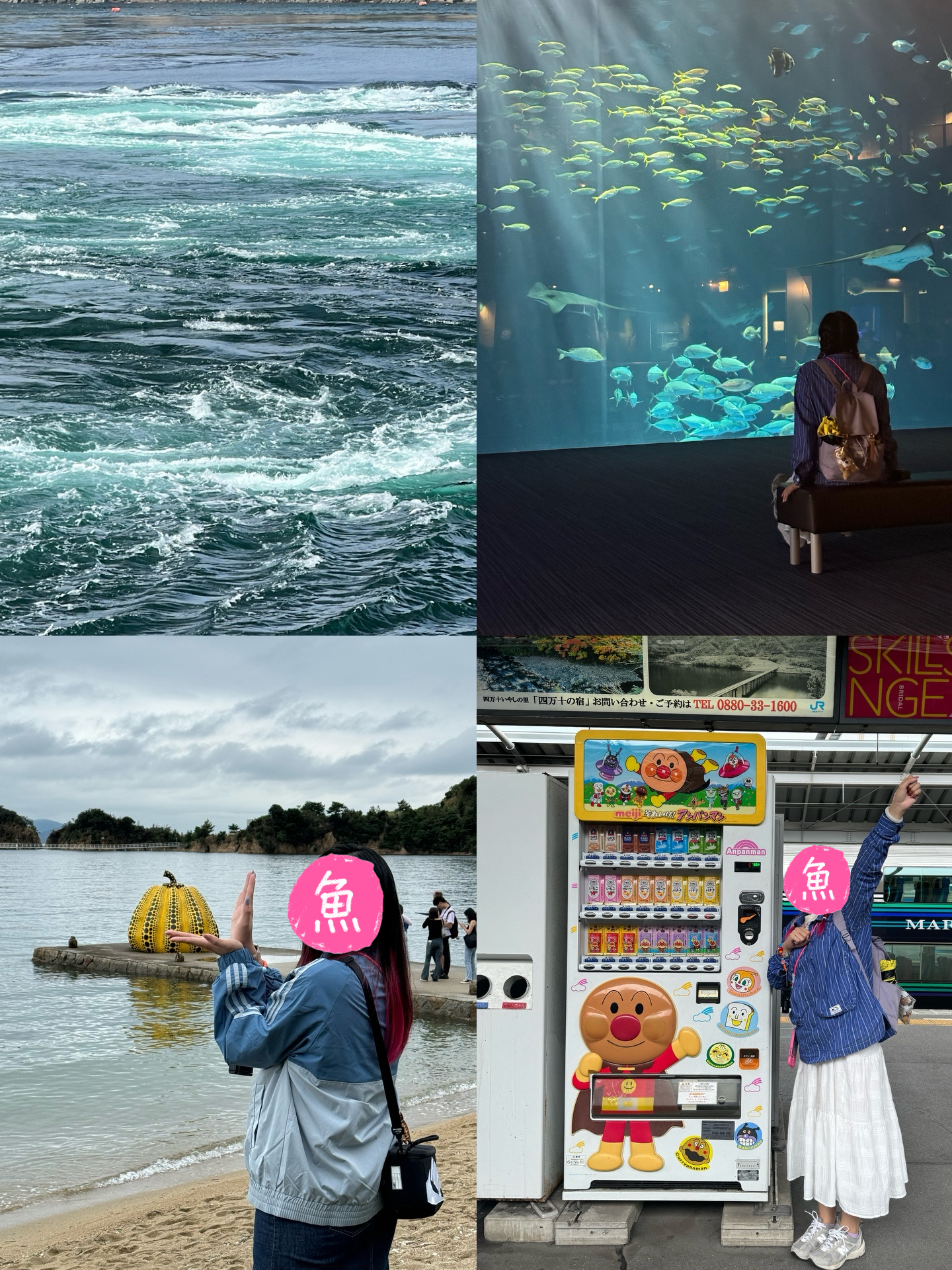 打卡了一般观光客不太会去的淡路岛、直岛,在船上睡了一晚,看到名侦探柯南同款的明石海峡大桥和鸣门漩涡、草间弥生的大南瓜、面包超人车站、四国水族馆…