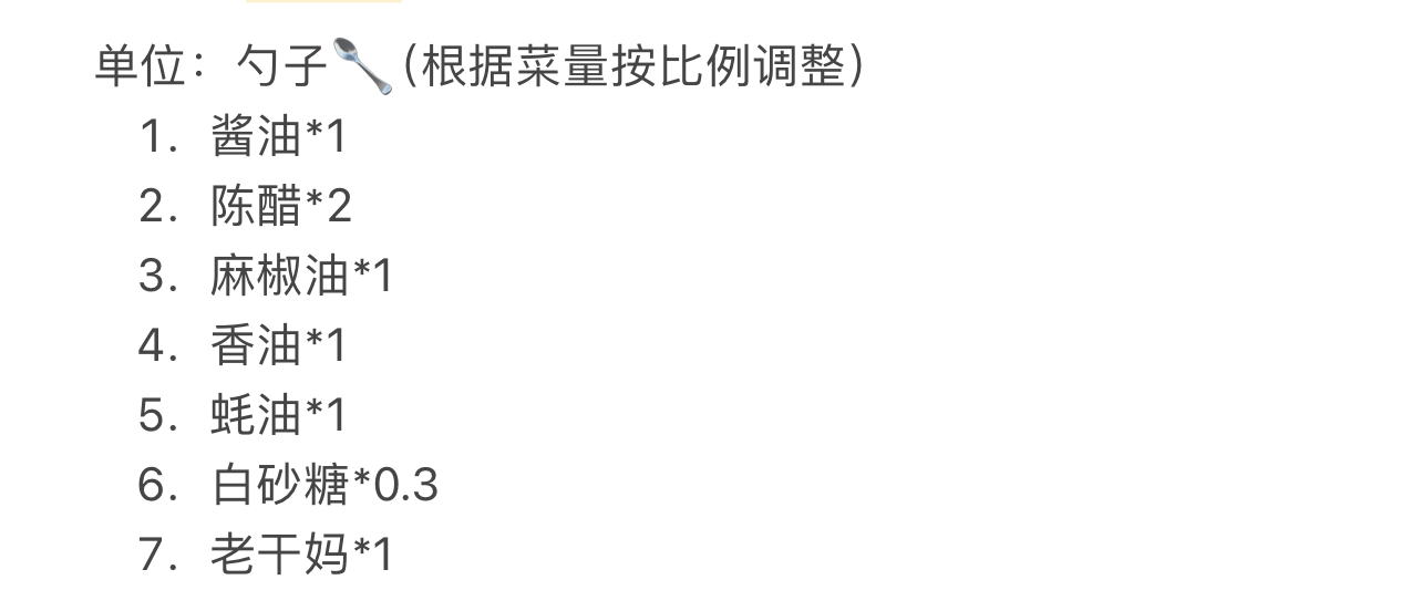- 香菇包的【凉拌鞋底儿都好吃的秘方料汁儿】: