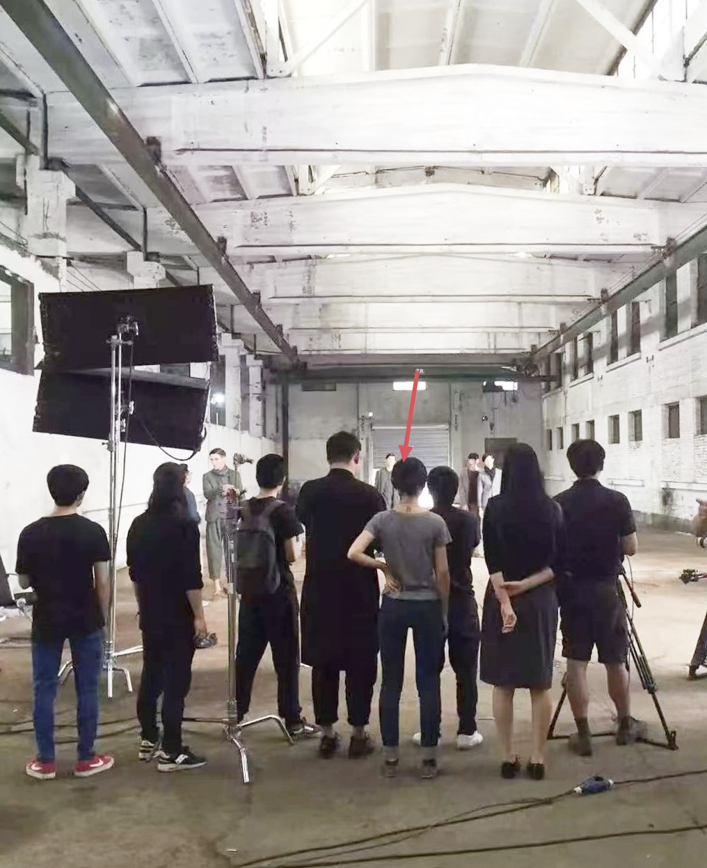 更早的图片!!和罗浩一起给 JNBY “速写”品牌拍摄广告的时候的工作场景,红色箭头就是rio的背影,作为品牌的员工来现场参与。