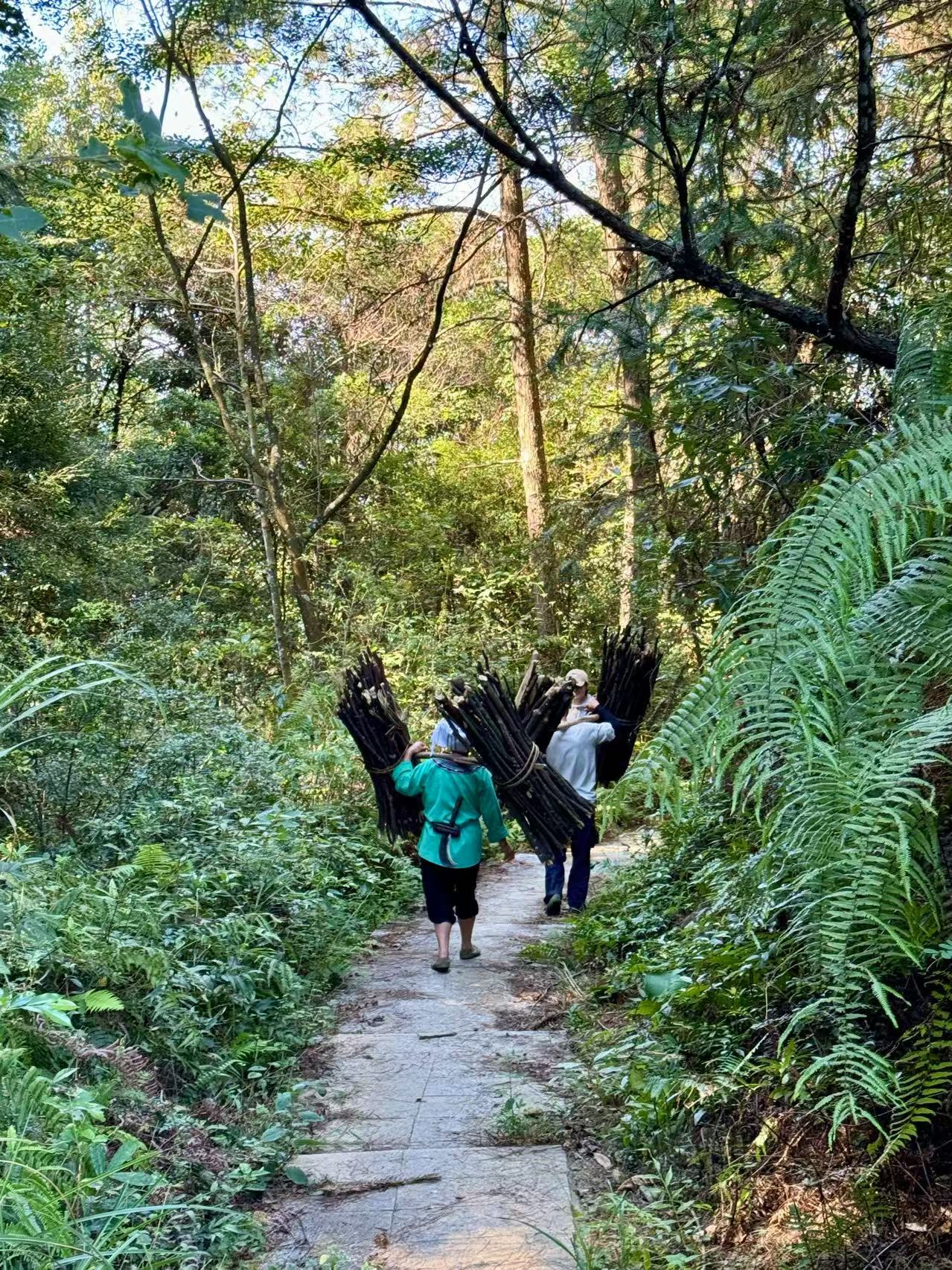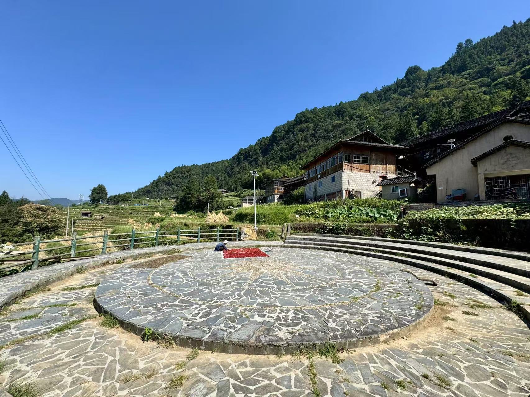 山上的徒步路线也设置的很好,高处的观景台可以俯瞰梯田环绕下的怎雷三寨,竹林掩翳的石板路,偶遇的水家砍柴人,虽然蜘蛛网多到有闯进盘丝洞的错觉,但路口一转就看到跳月坪上懒洋洋晒谷子的寨里人。