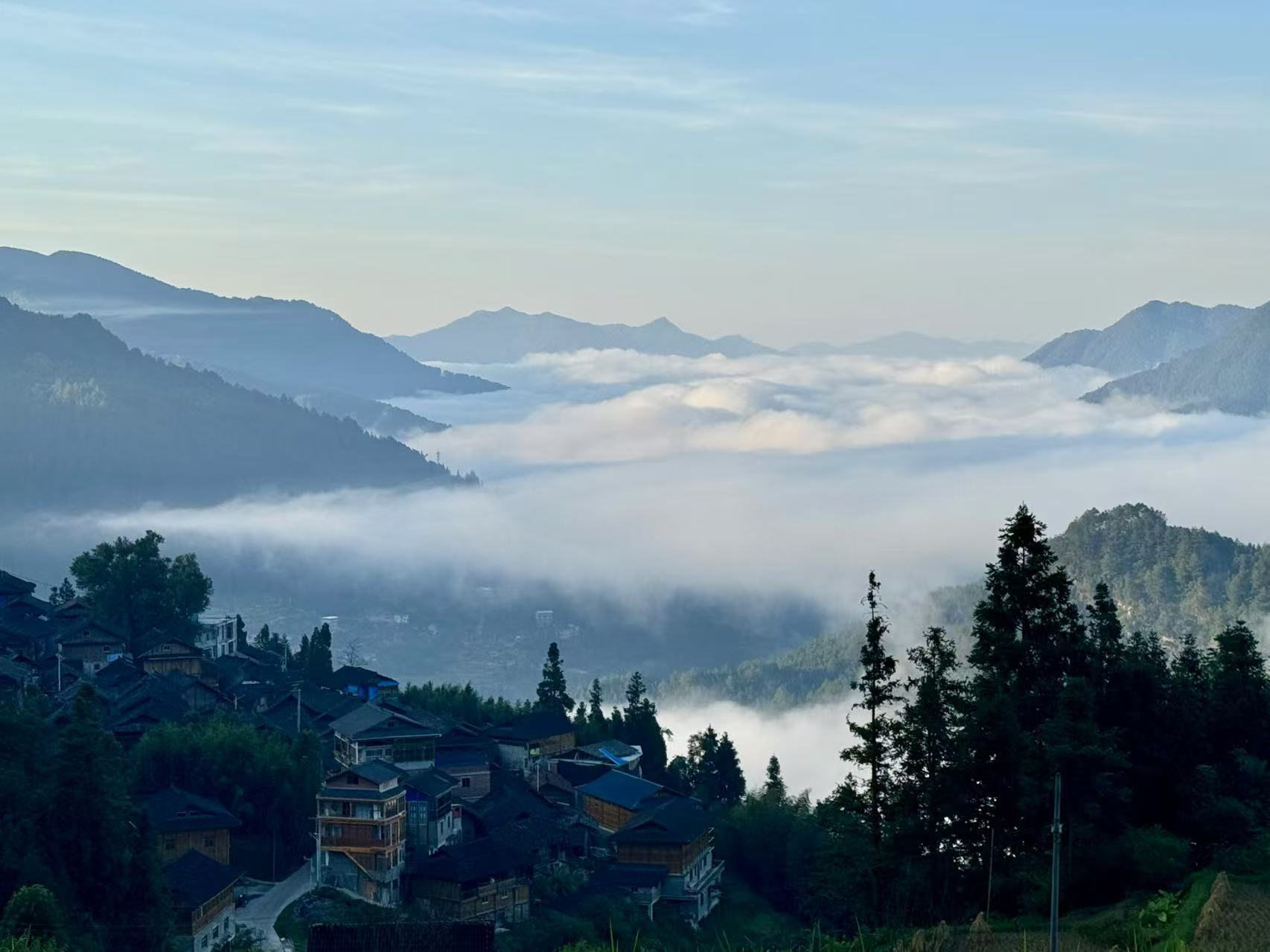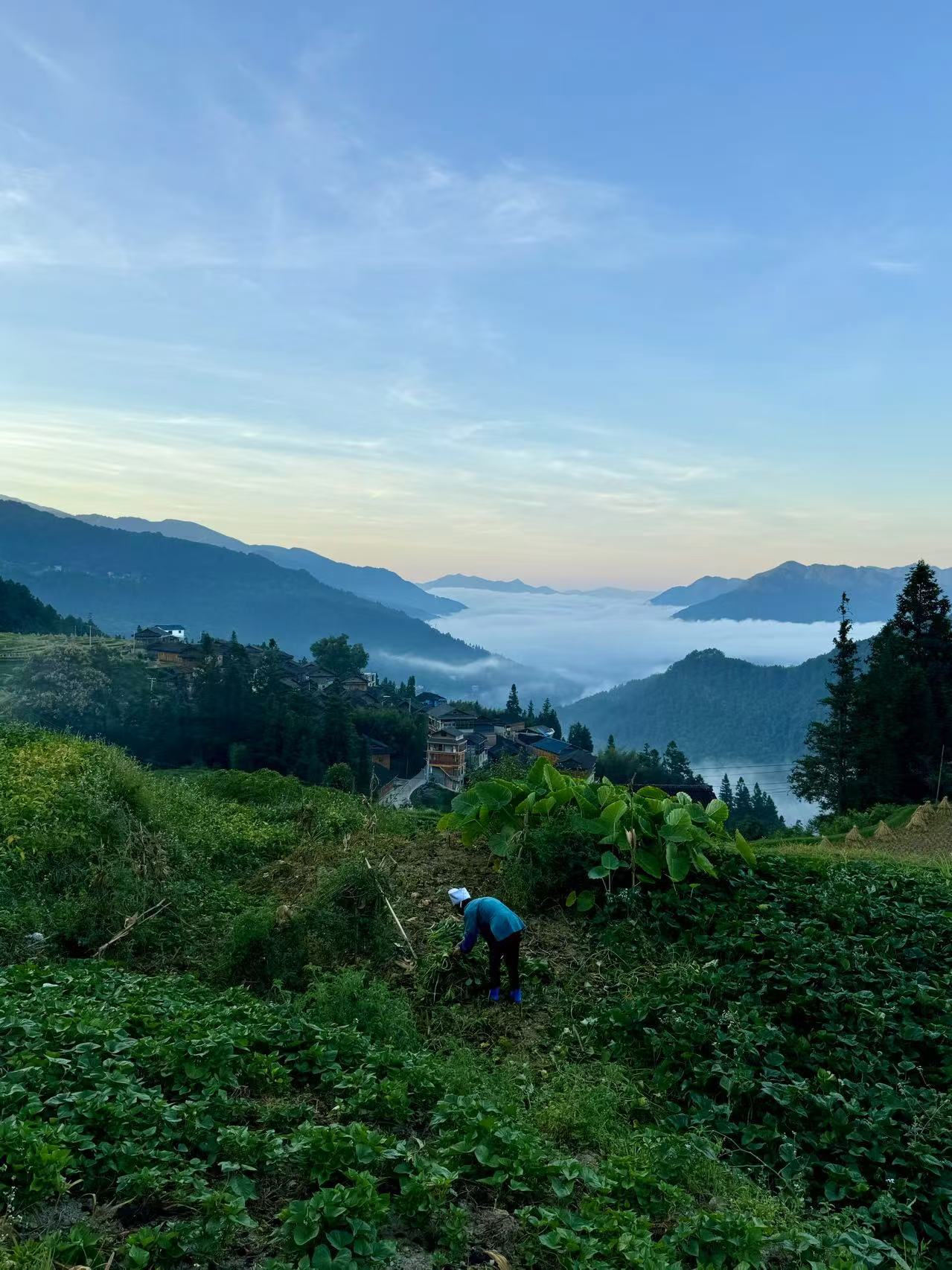 水族和苗族和谐相处的上中下寨,离西边的三都和东边的榕江都足够遥远,如果能在这里住一晚,那是再好不过了:晴朗的夜晚天空中银河闪烁,若没赶上好天气,无论晴雨都会出现的晨间云海也不会让你失望——无论是什么时间,坐在宽阔的平台上发呆都是合适的,人望着天边的景,也化作景里的人。