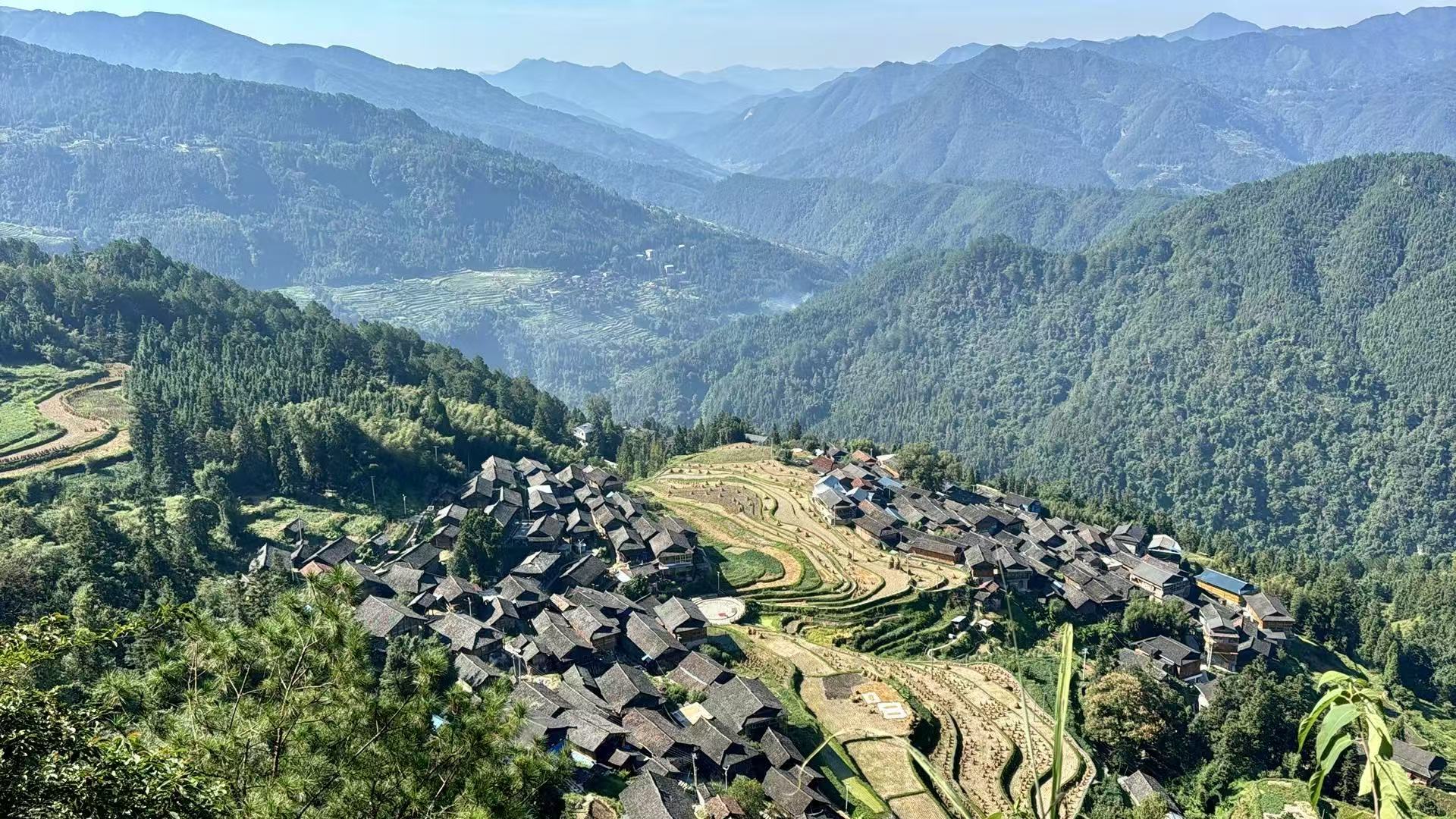 观景台上俯瞰的上寨(水族)和中寨(苗族)以及远处的下寨(水族)》》》》