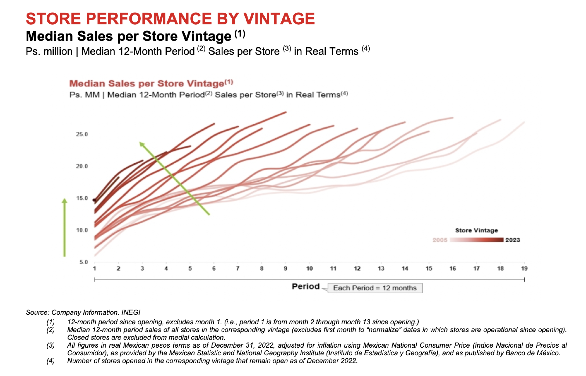 墨西哥折扣超市公司Tiendas 3B在招股书中披露的门店店龄与销售情况的关系