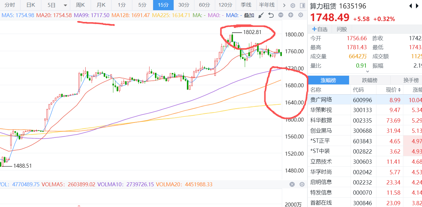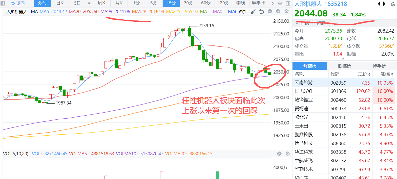 人形机器人 上周五出现了本次上涨以来的第一次15分钟回踩