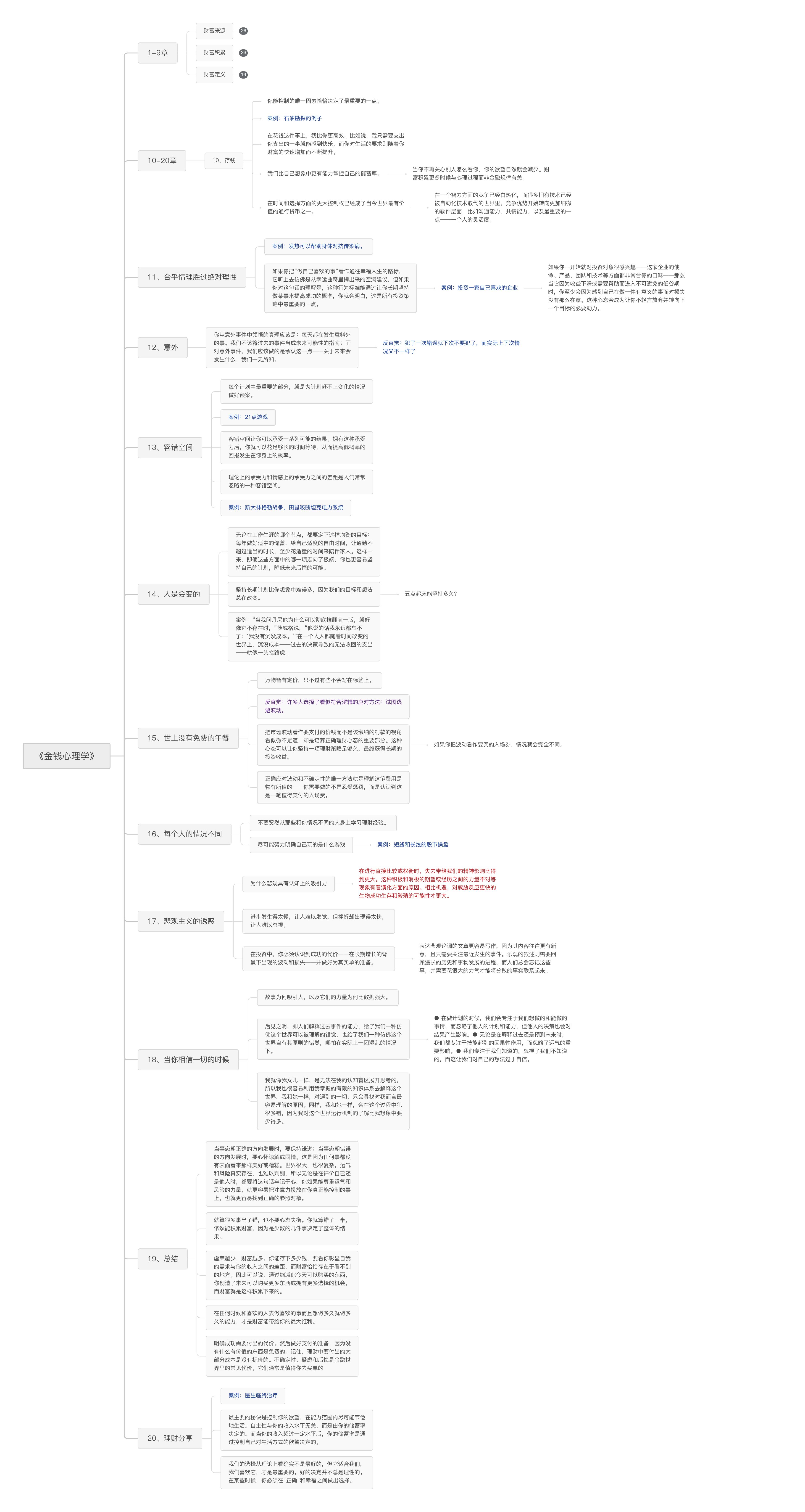 今天把《金钱心理学》的10-20章,用导图的方式又梳理了一遍。直接粘贴一张整理图片