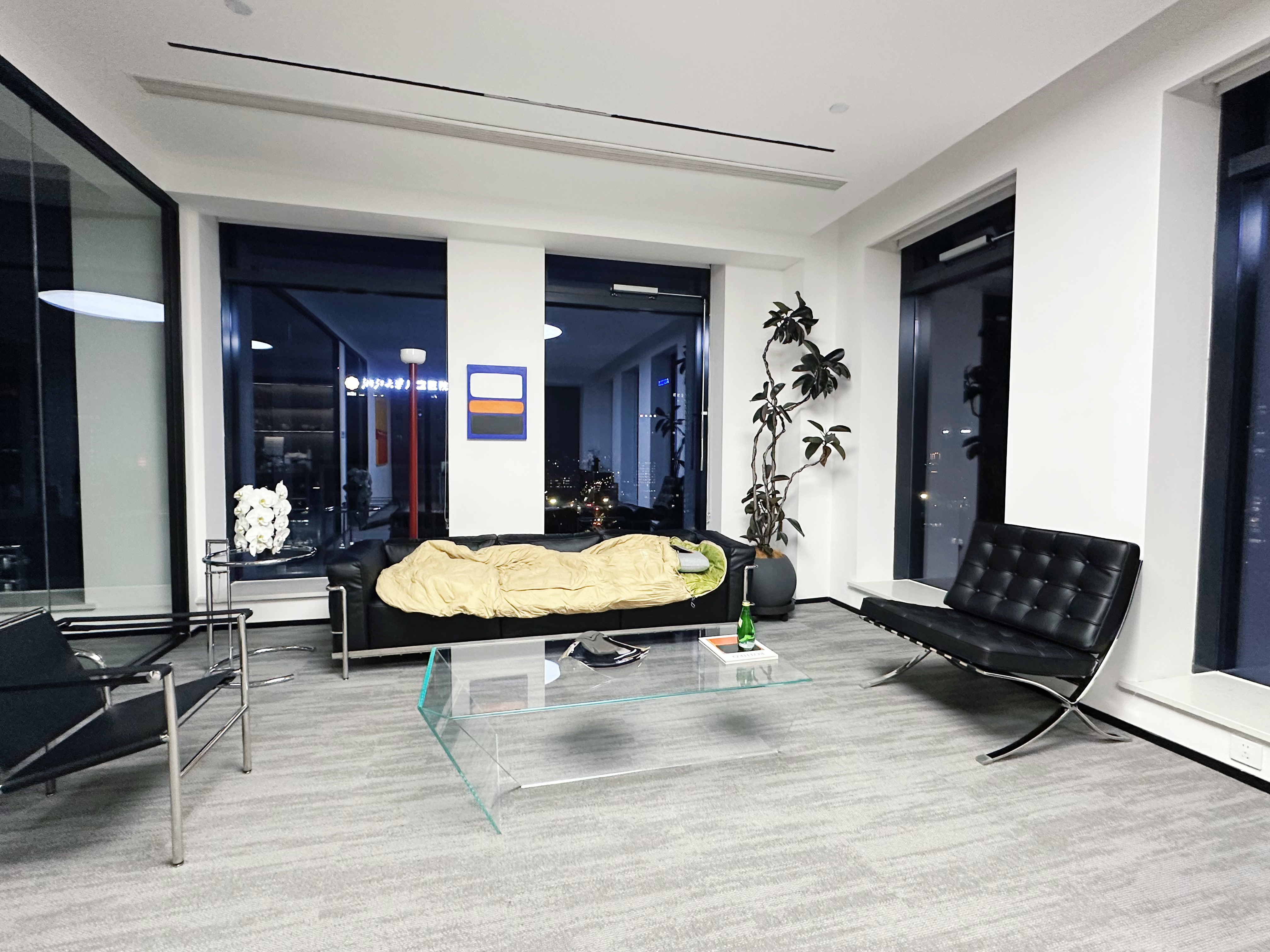 (这期录制结束后,老毕发来照片,说自己这个月会很忙,就住在办公室吧。)
