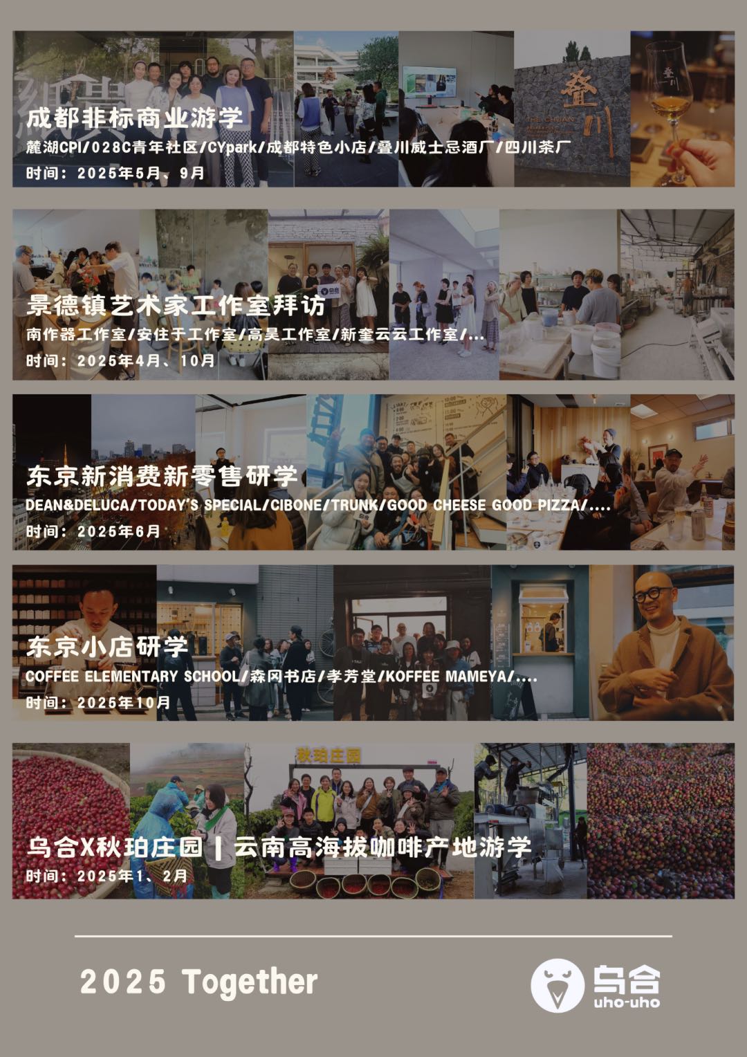 开店培训、产地游学、非标商业考察、资源整合都是我们在做的事,乌合的第9年,想要跟好玩的店,有趣的人,做更多有意思有收获的事!