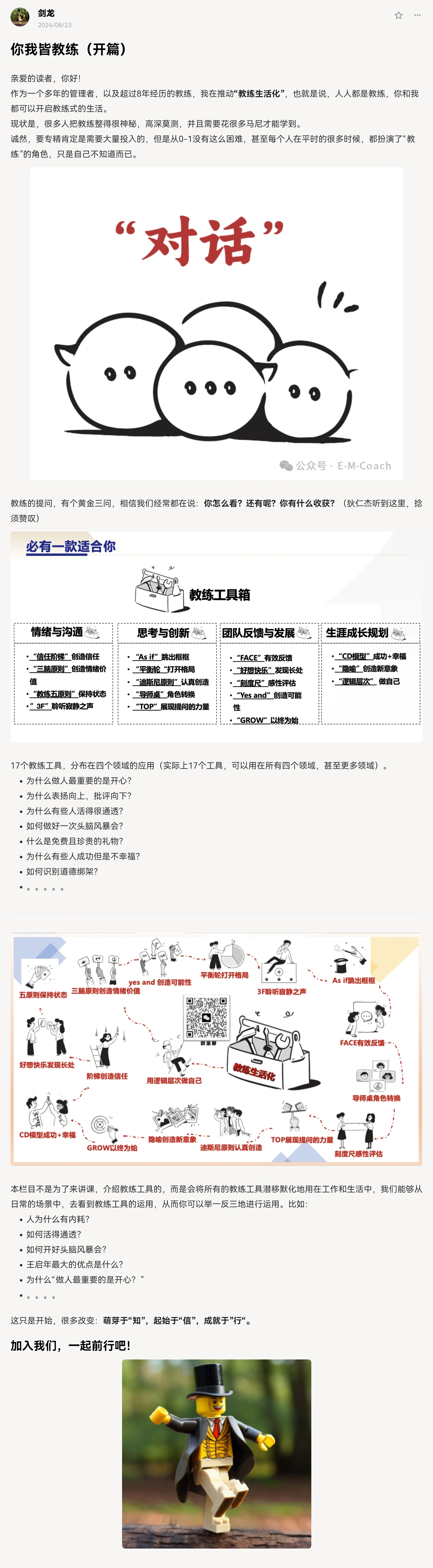 我倡导“教练生活化”,有兴趣可进入群聊。