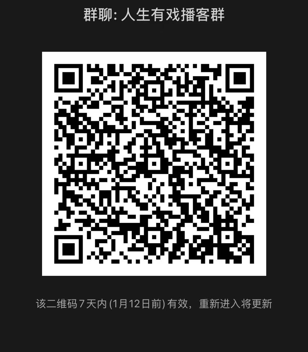 本期中奖小伙伴会通过小宇宙站内回复,中奖的小伙伴们我们会在我们的粉丝群公布,所以也请大家一起加入【人生有戏】微信群吧~二维码如果过期,也可以添加小助手的Meissen9的微信加你入群